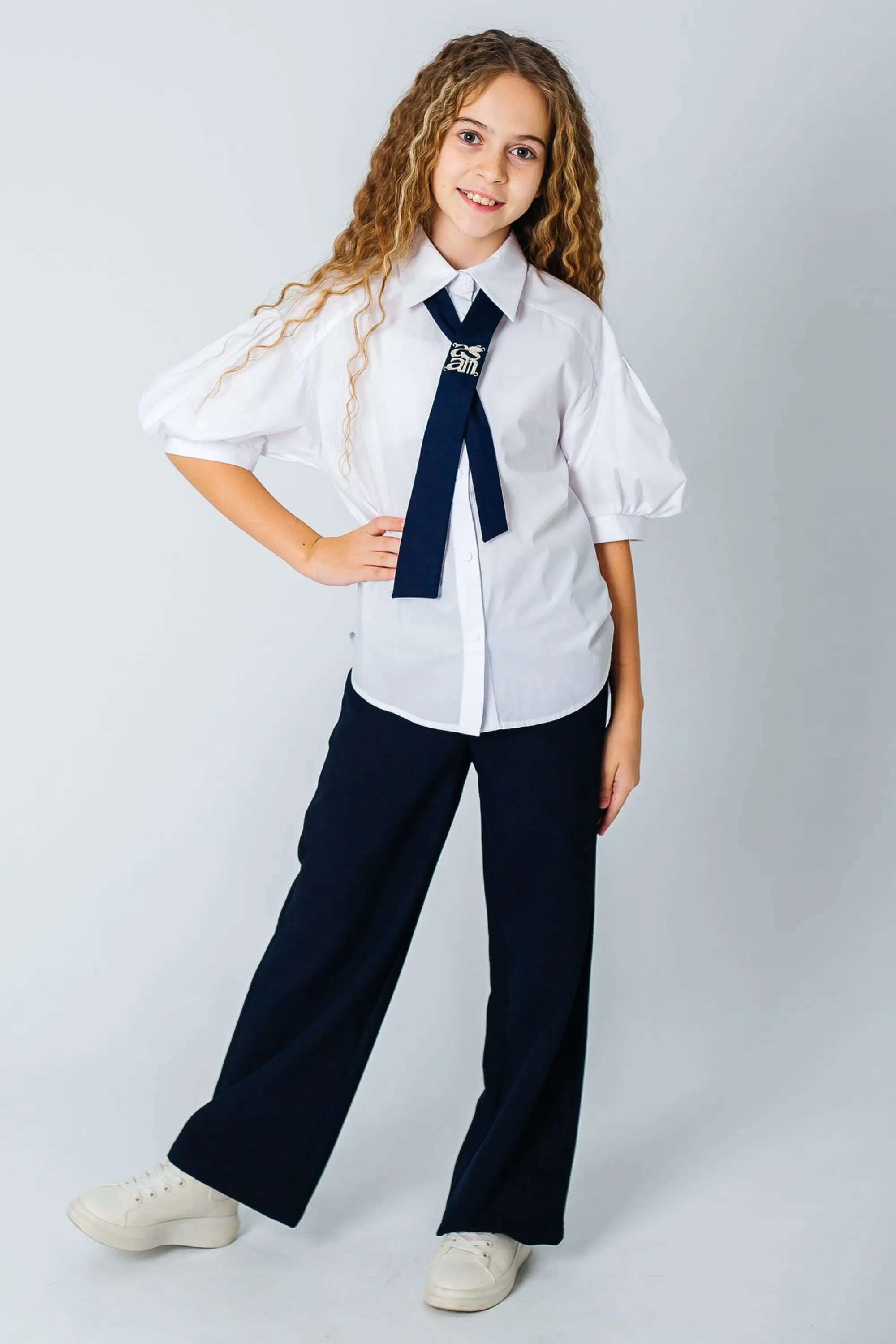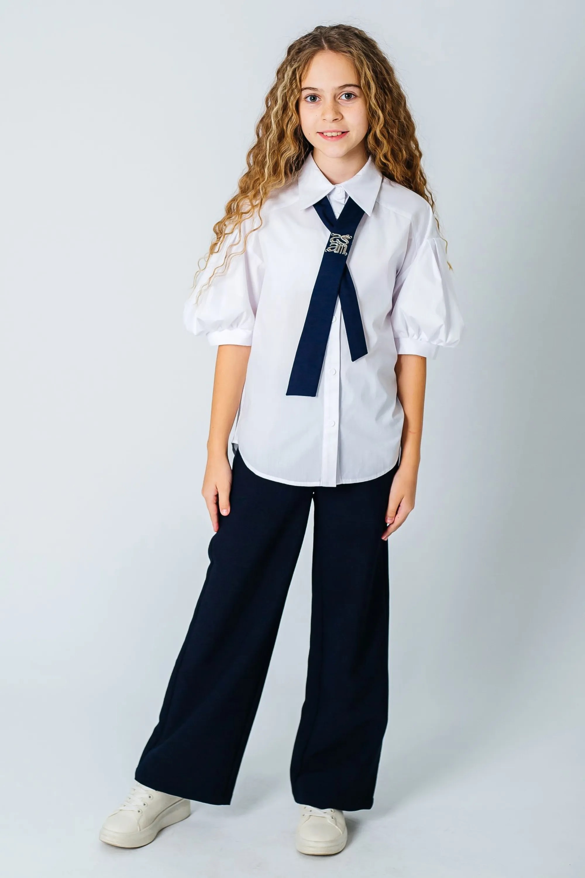 Блузка +галстук д/д кор.рук. белый