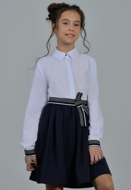 Пышная юбка со сборкой. Пояс на задней части - резинка, передняя часть декорирована лентой. Модель выполнена из ткани габардин.