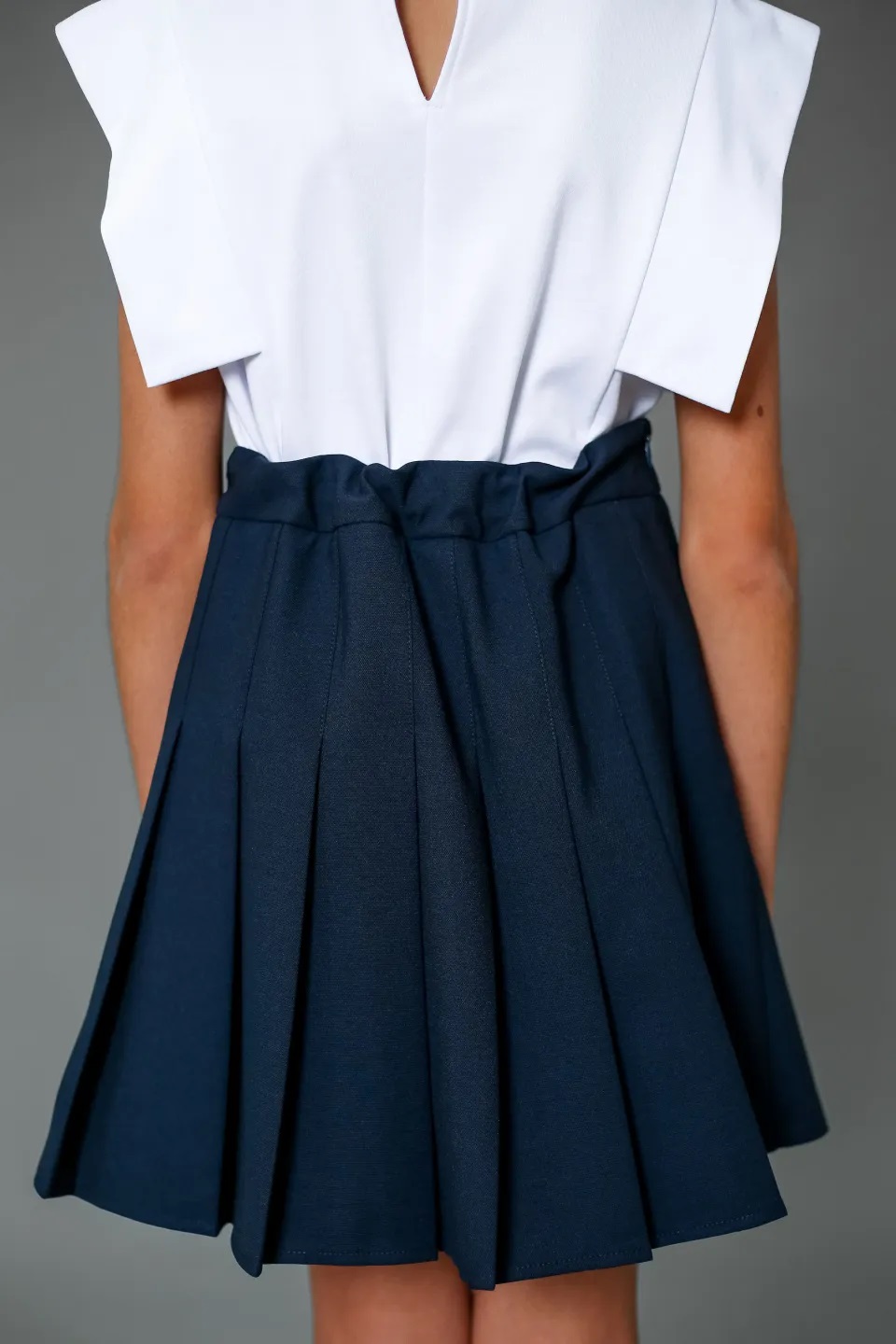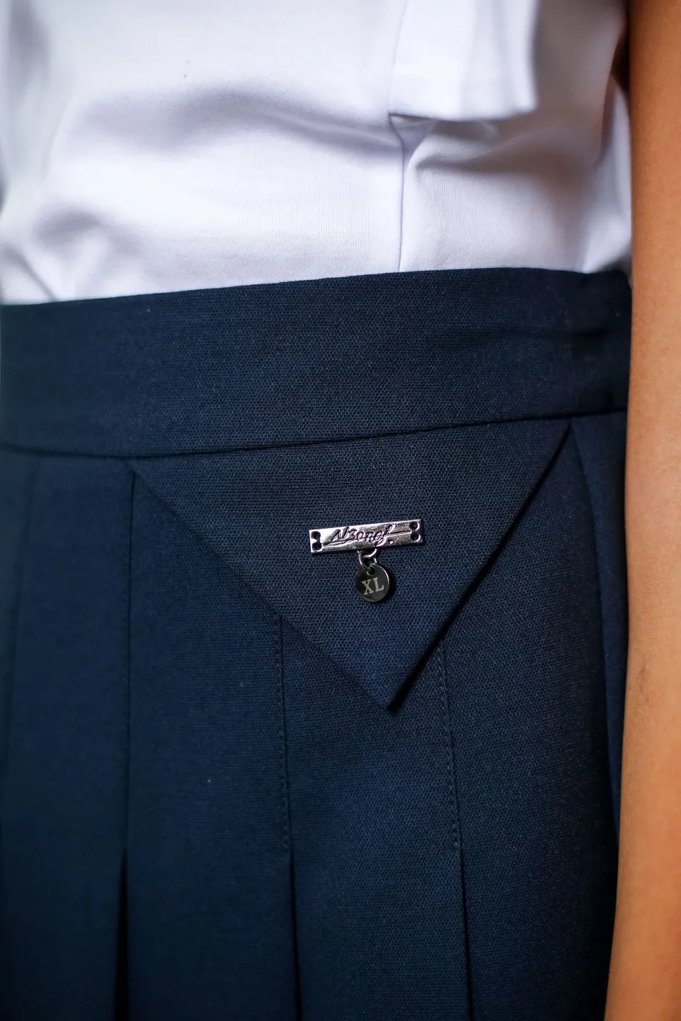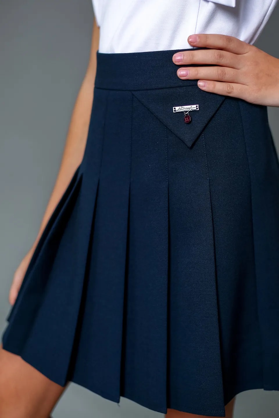 Юбка в складку, швейная, сбоку на молнии, декоративная вставка на поясе - треугольник