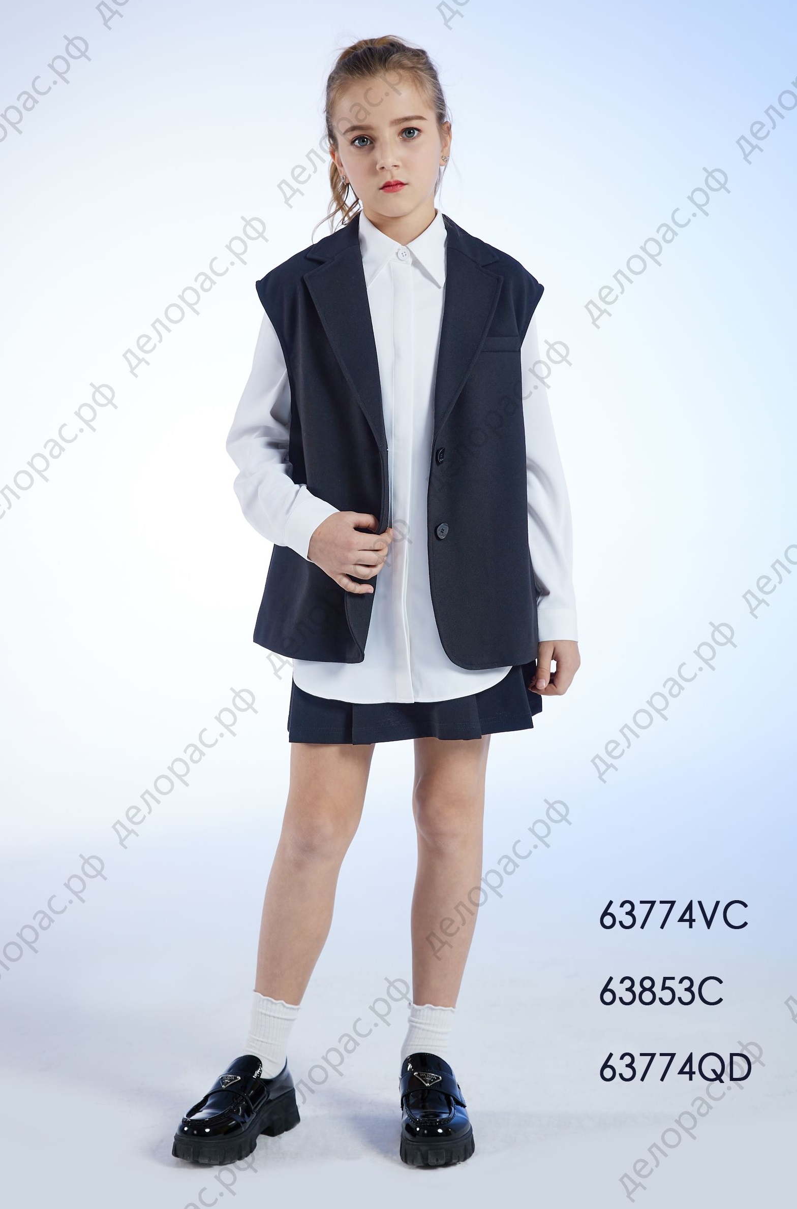 Этот комплект школьной формы имеет модельные номера 63824W, 63774VC, 63774QD и 63774VC. Он идеально подходит для подростков и создан из высококачественных материалов, таких как вискоза, нейлон и эластан. Бренд Deloras гарантирует надежность и стильность этой школьной формы.