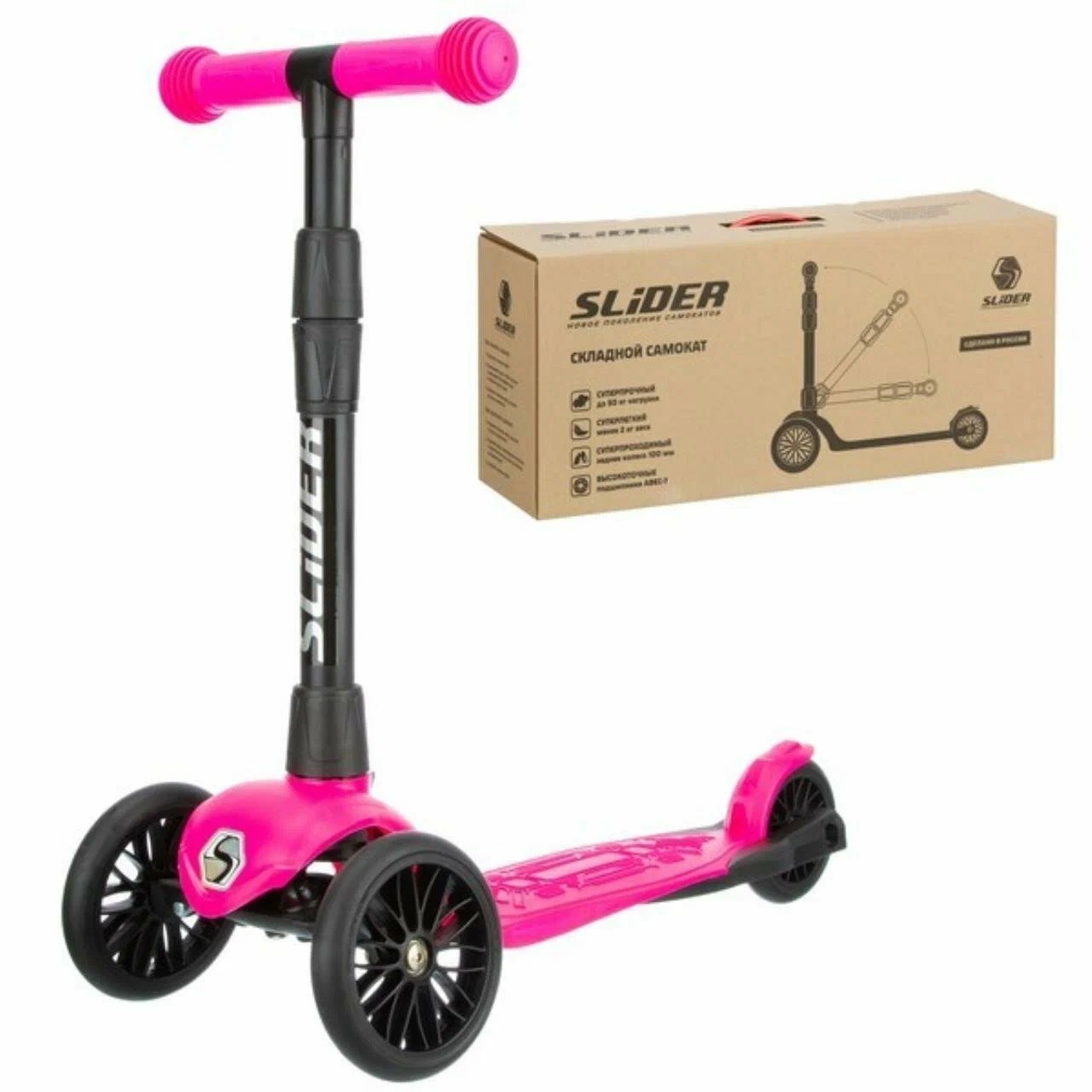 | Самокат 3-х кол. SLIDER Start складной кол. PU,до 50 кг (-фуксия) |