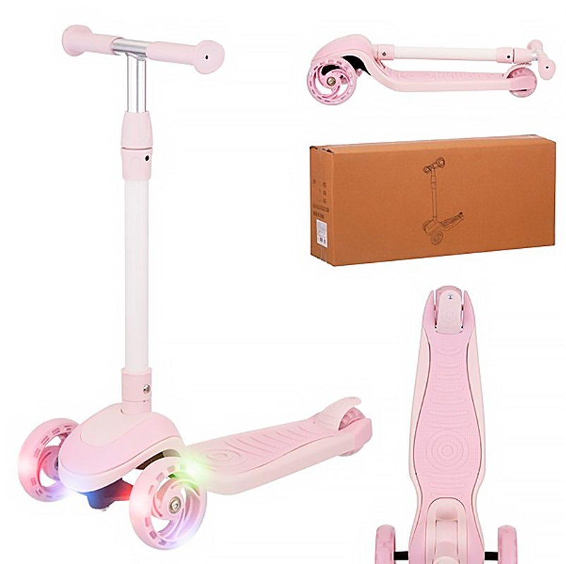 | Самокат 3-х колес,складной, PU со светом (-розовый) |