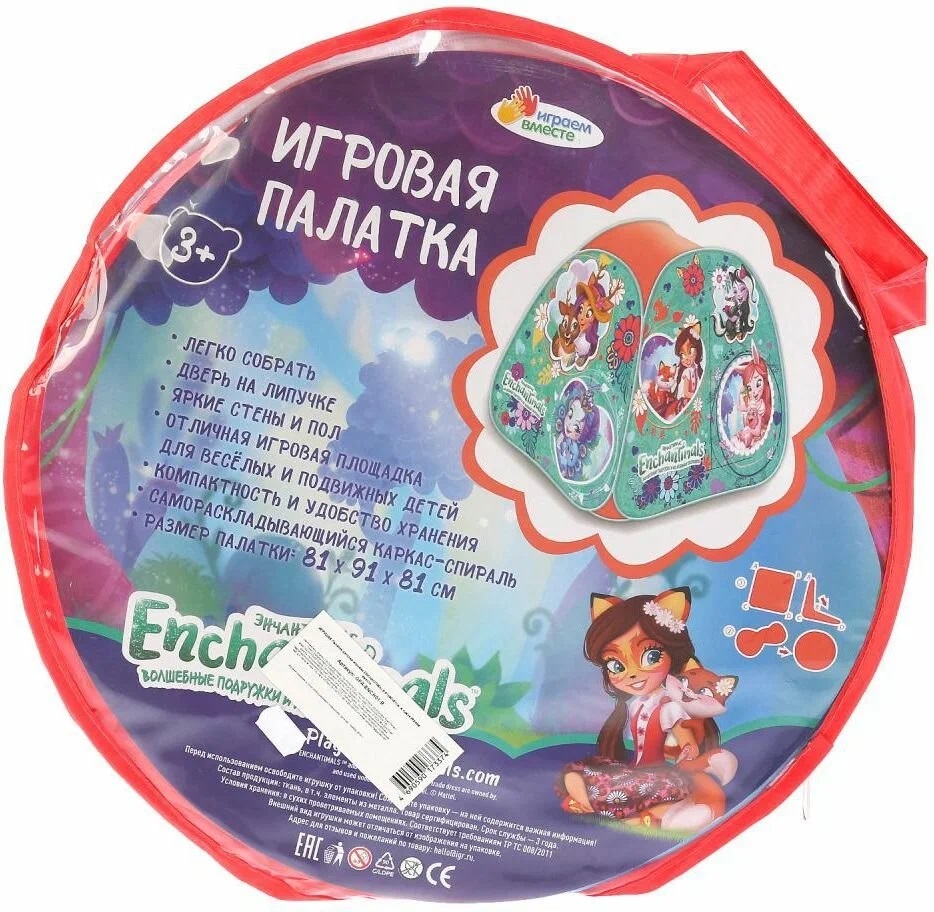Игры с детской палаткой «Enchantimals» ТМ «Играем вместе» – любимое развлечение каждого малыша! Она украшена изображениями персонажей одноимённого мультфильма и сочетает в себе несколько полезных качеств: