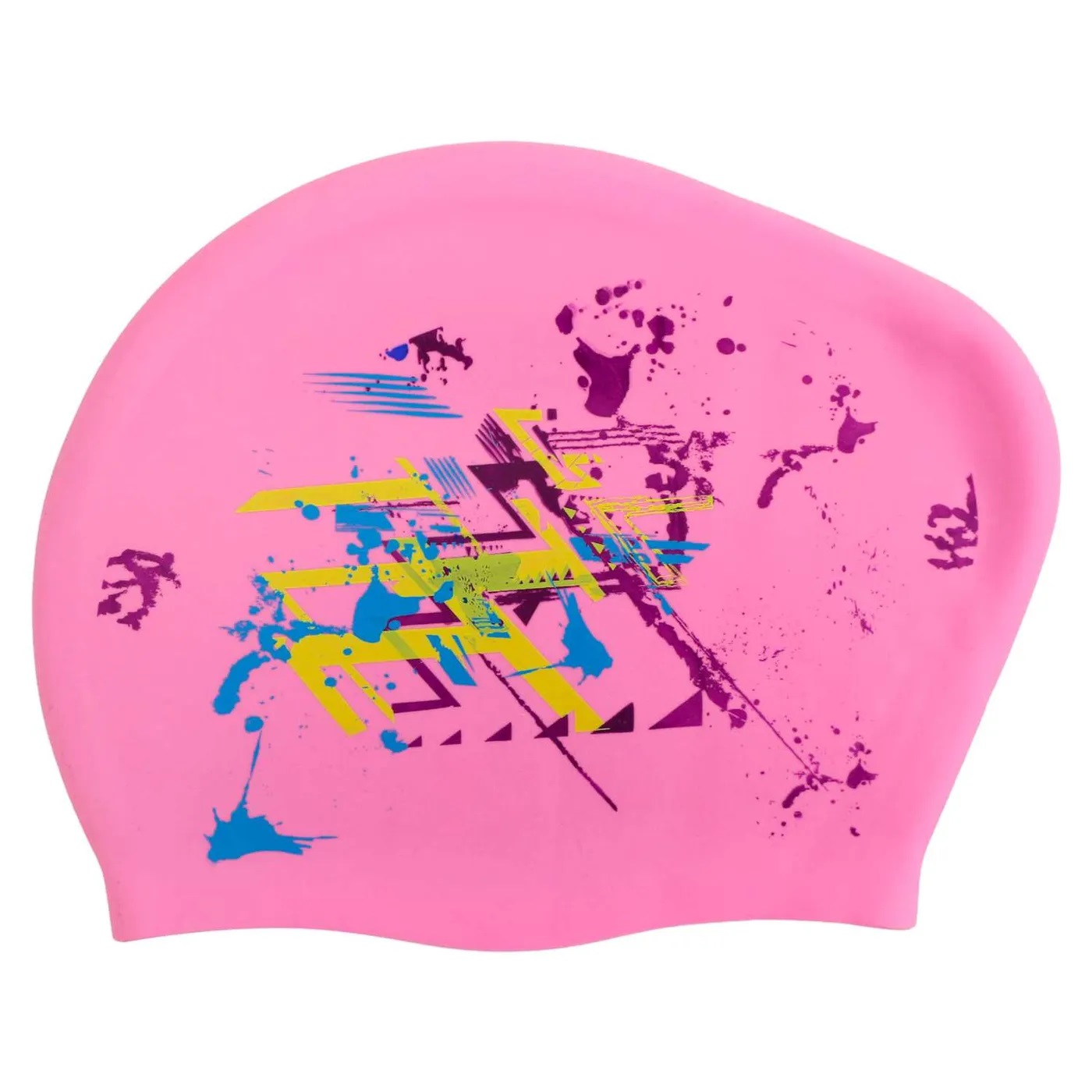 Шапочка для плавания Elous для длинных волос EL006 силиконовая геометрия розовая