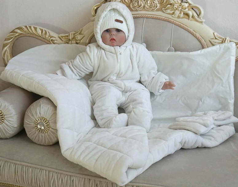 В комплект входит одеяло(размер 95*95), комбинезон, пояс и шапочка. Верх -ткань вельбоа, плюш (искусственный велюр). Внутренняя составляющая 100% хлопок (производство Турция).
