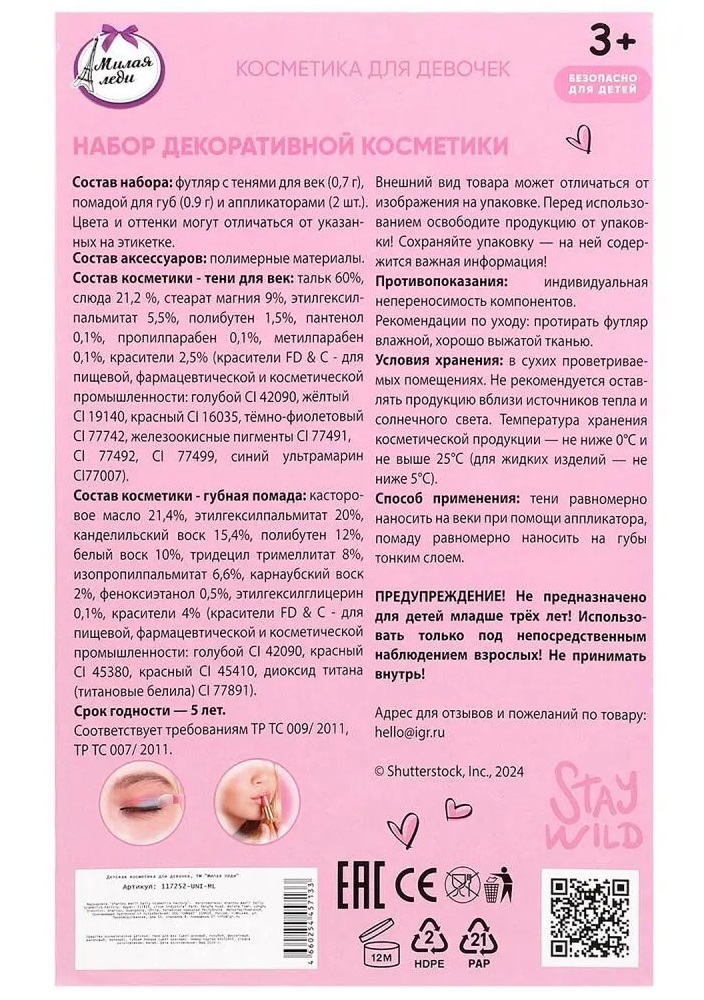 Девочки в любом возрасте хотят быть красивыми. Специально для юных модниц был разработан этот набор, состоящий из теней для век и помады для губ в красивом футляре. Маленькая принцесса обязательно оценит красочные цвета и модную упаковку. Развивайте чувство стиля и вкуса, учите девочку создавать свой неповторимый образ вместе с косметикой ТМ «Милая леди».