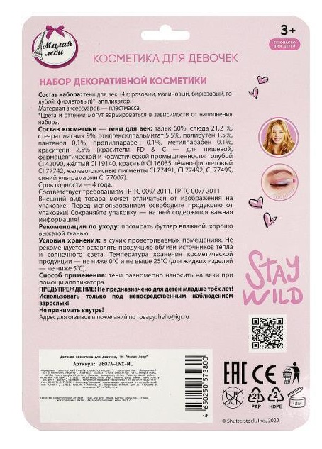 Девочки в любом возрасте хотят быть красивыми. Специально для юных модниц был разработан этот набор, состоящий из теней для век, блеска для губ и лаков для ногтей в красивом футляре. Маленькая принцесса обязательно оценит красочные цвета, волшебный блеск и модную упаковку. Развивайте чувство стиля и вкуса, учите девочку создавать свой неповторимый образ вместе с косметикой ТМ «Милая леди».