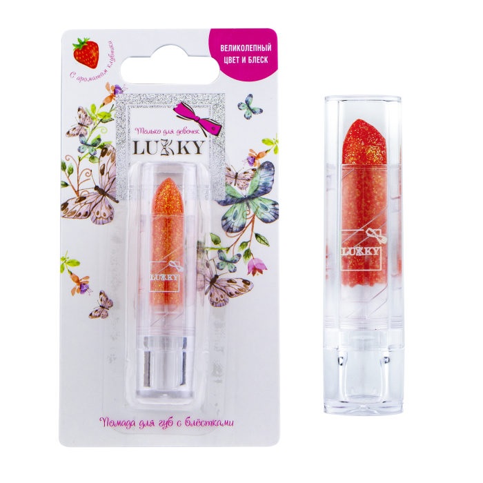 Помада с блёстками 3,4 г с ароматом клубники, цвет коралловый, блистер, Lukky, Т16763.
