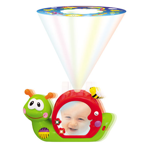 В арсенале изделия несколько спокойных убаюкивающих мелодий, а также специальные световые эффекты, благодаря которым ночник может создавать милые проекции на потолке и стенах. Ночник сделан в виде забавной улитки с раковиной-полумесяцем, который представляет собой маленькое зеркальце. Смотря в него, ваш ребенок научится воспринимать окружающее пространство и отличать себя от других людей.