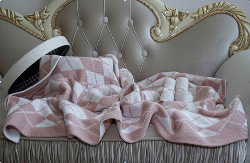 двухсторонний плед изготовлен из пряжи (производство Турция), в составе пряжи гипоаллергенный акрил с небольшим добавлением хлопка