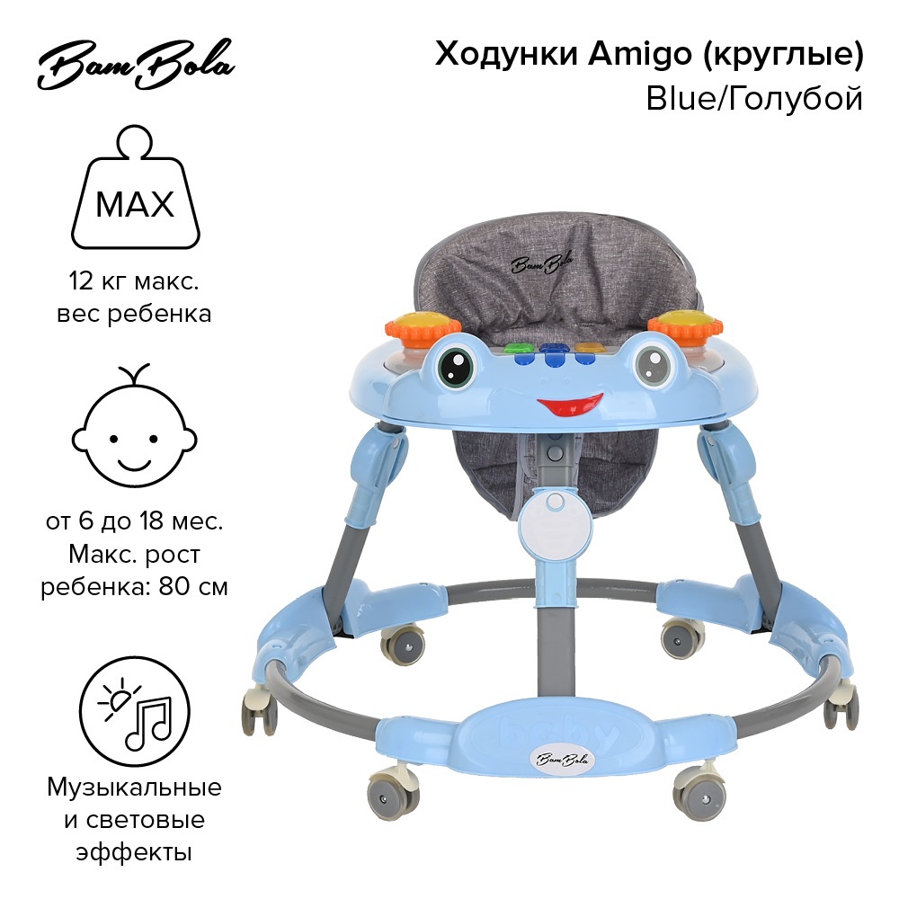 | Ходунки детские Amigo круглые (игрушки, музыка) (-голубой) |