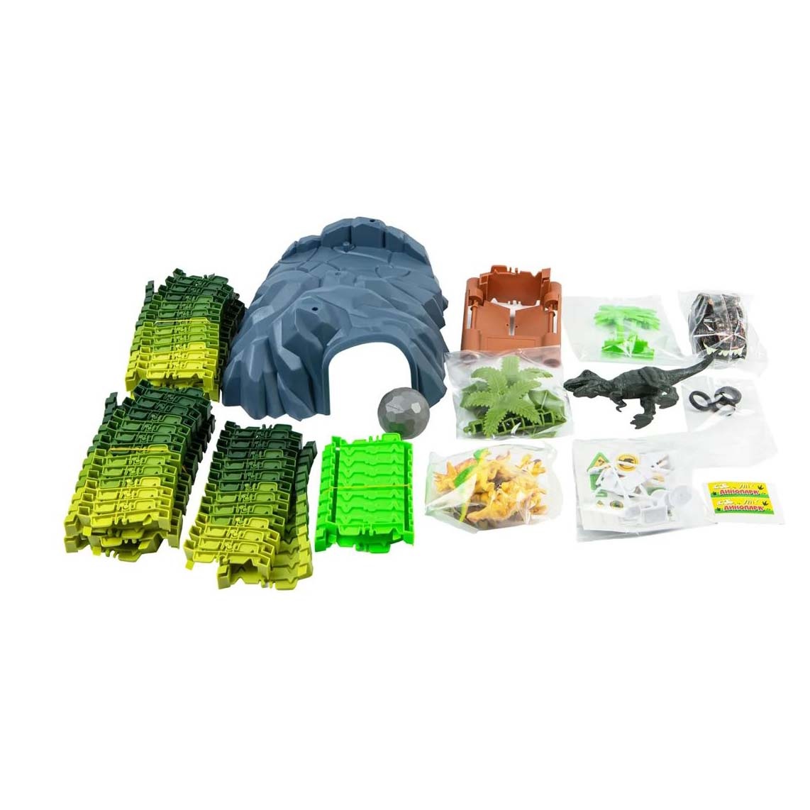 В набор Динопарк входит туннель, ворота, шар, трасса, 7 динозавров - всего 151 деталь в удобном боксе-чемодане.