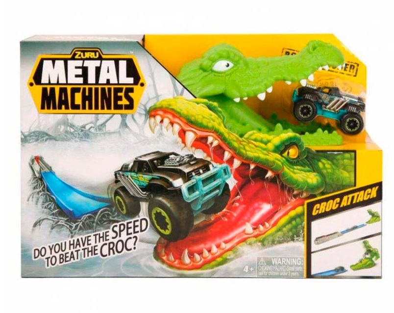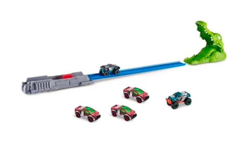 Игровой набор Metal Machines Трек Крокодил Zuru 6718. Для тех, кто не боится опасности! Пройдите через мертвые петли и не попадитесь в пасть к страшной рептилии, отправляясь в путь по треку Zuru Metal Machines «Крокодил».