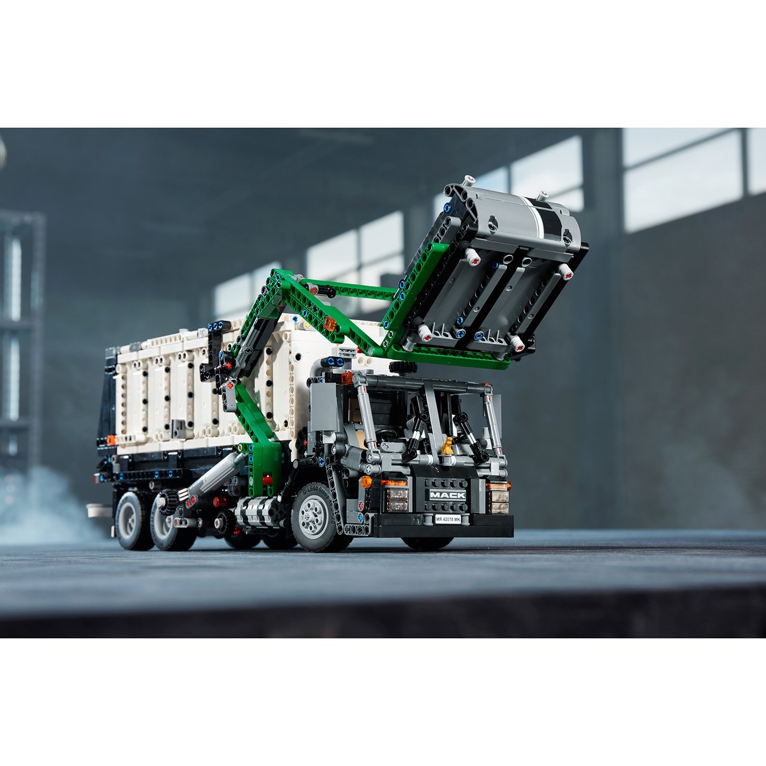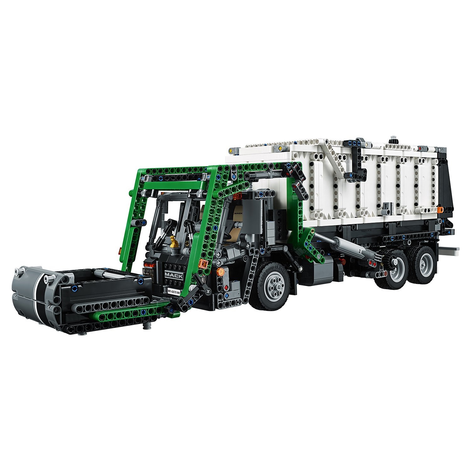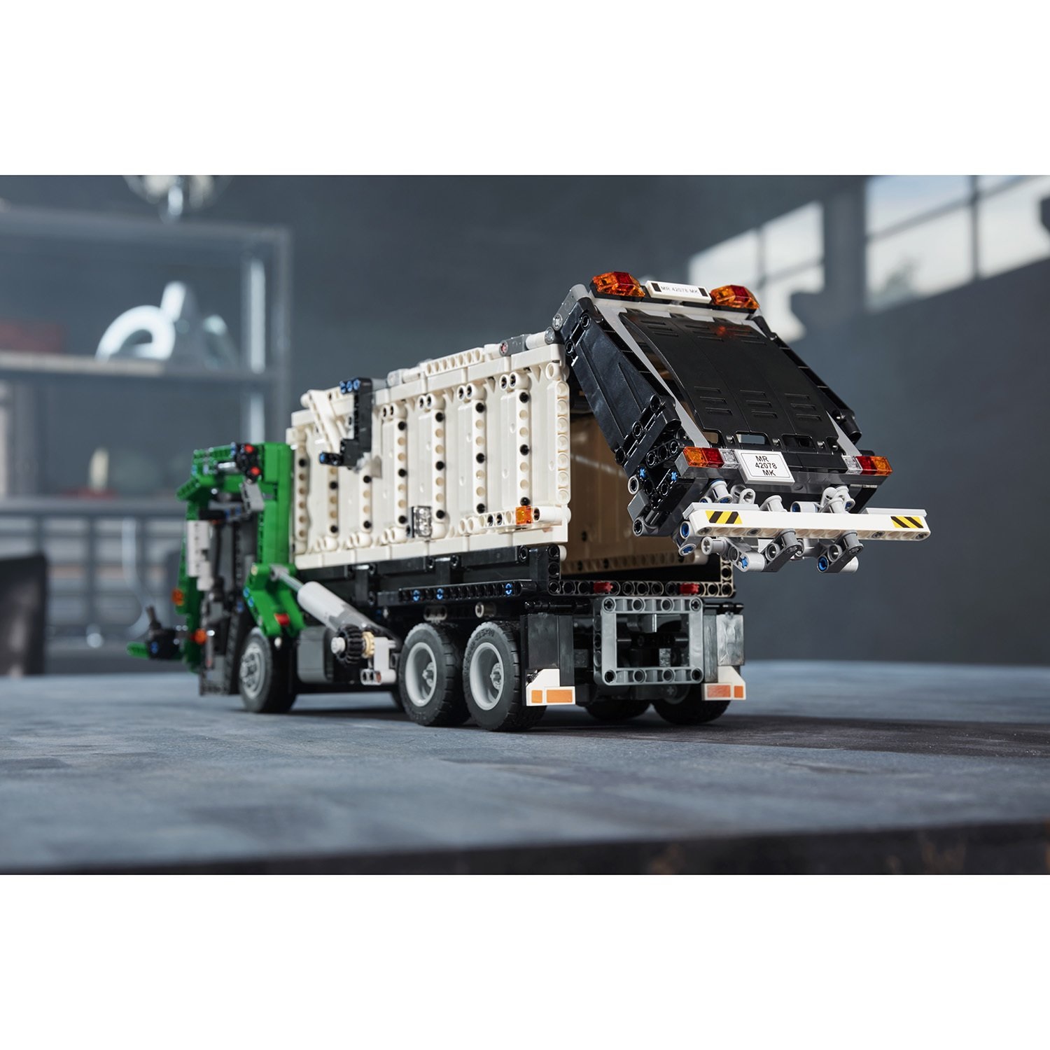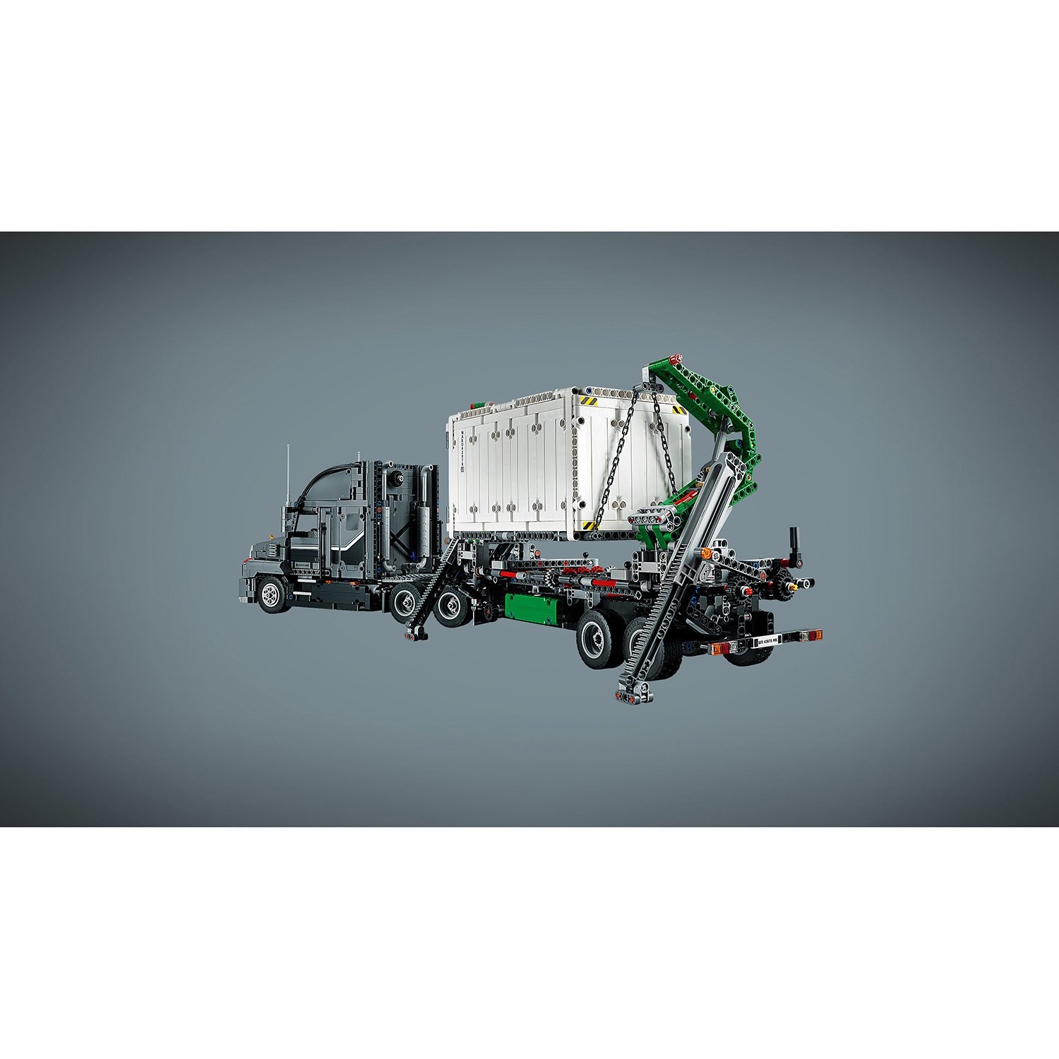 Этот грузовик – очень точная копия с невероятной детализацией. Отправляйся в дальнюю дорогу! В кабине, где место водителя, есть приборная панель, руль, сидения регулируются. Можешь заглянуть под капот, где есть 6-цилиндровый двигатель со съемными поршнями. Здесь даже вращается вентилятор радиатора! Погрузи контейнер при помощи синхронизированных кранов, а когда изучить весь функционал, преврати грузовик в мусорный контейнер и отправляйся убирать мусор со стройки.