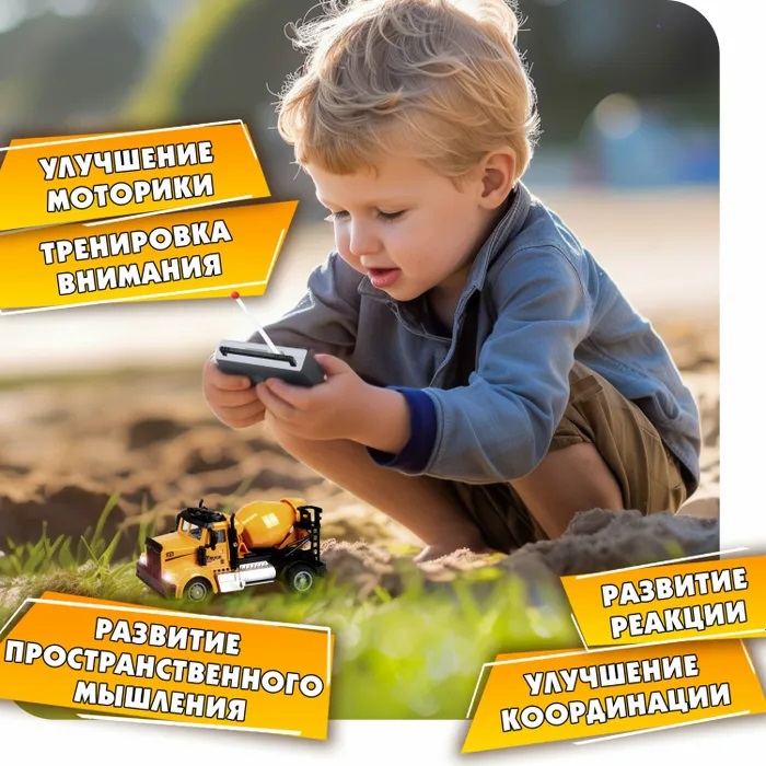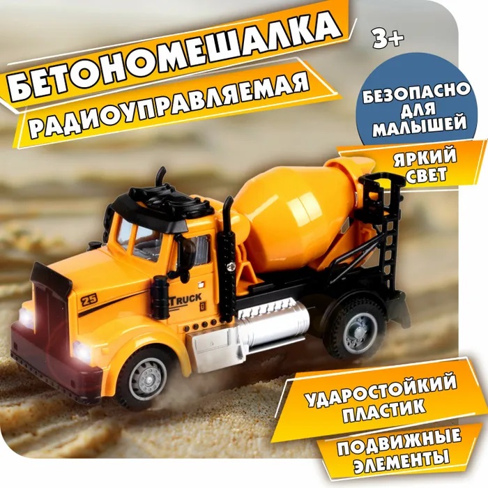 Это не просто машинка на пульте управления. Это целая спецтехника на радиоуправлении Горстрой от 1toy, с которой можно организовать настоящую стройку и представить себя в роли водителя. Бетономешалка игрушка — это машина на пульте управления со светом. Также строительные машины для мальчиков очень похожи на настоящие по дизайну. Что касается размера, то бетономешалка машинка — это не мини машинка на пульте управления (27 МГц). А если быть точнее, масштаб 1:64. Спецтехника игрушки имеют 4 канала, поэтому вместе с друзьями можно придумывать интересные сценарии игр. Городской транспорт игрушки представлены в ассортименте: экскаватор, автокран, бетономешалка на радиоуправлении и самосвал. Можно выбрать 1 или собрать целую коллекцию. Машина на радиоуправлении может подарить много часов увлекательных игр, поспособствовать лучшей концентрации внимания, логическому мышлению, развитию мелкой моторики, выработке скорости реакции, координации движений и пространственному ориентированию. Такая машинка на пульте управления для мальчика может стать отличным подарком на любой праздник. Как строительные машины игрушки, так и пульт работают от 2-х батареек (не входят в комплект). Игрушечный транспорт подходит для детей старше 4 лет.