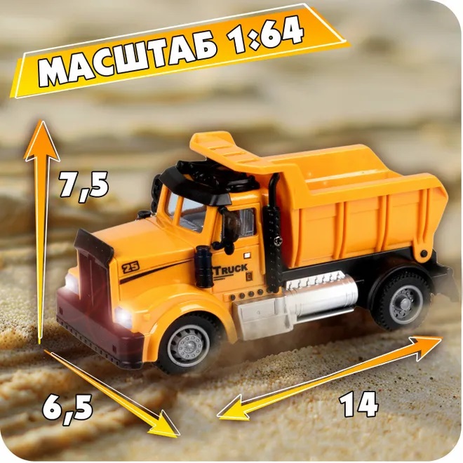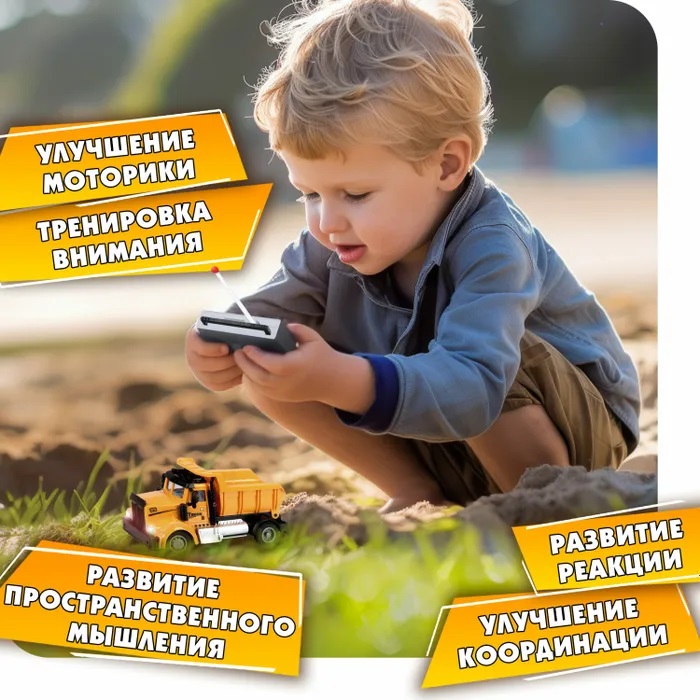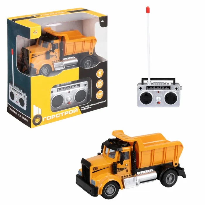 Это не просто машинка на пульте управления. Это целая спецтехника на радиоуправлении Горстрой от 1toy, с которой можно организовать настоящую стройку и представить себя в роли водителя. Самосвал на радиоуправлении — это машина на пульте управления со светом. Также строительные машины для мальчиков очень похожи на настоящие по дизайну. Что касается размера, то самосвал детский — это не мини машинка на пульте управления. А если быть точнее, масштаб 1:64. Спецтехника игрушки имеют 4 канала, поэтому вместе с друзьями можно придумывать интересные сценарии игр. Городской транспорт игрушки представлены в ассортименте: экскаватор, автокран, машинка самосвал и бетономешалка. Можно выбрать 1 или собрать целую коллекцию. Машина на радиоуправлении может подарить много часов увлекательных игр, поспособствовать лучшей концентрации внимания, логическому мышлению, развитию мелкой моторики, выработке скорости реакции, координации движений и пространственному ориентированию. Такая машинка на пульте управления для мальчика может стать отличным подарком на любой праздник. Как строительные машины игрушки, так и пульт работают от 2-х батареек (не входят в комплект). Игрушечный транспорт подходит для детей старше 4 лет.