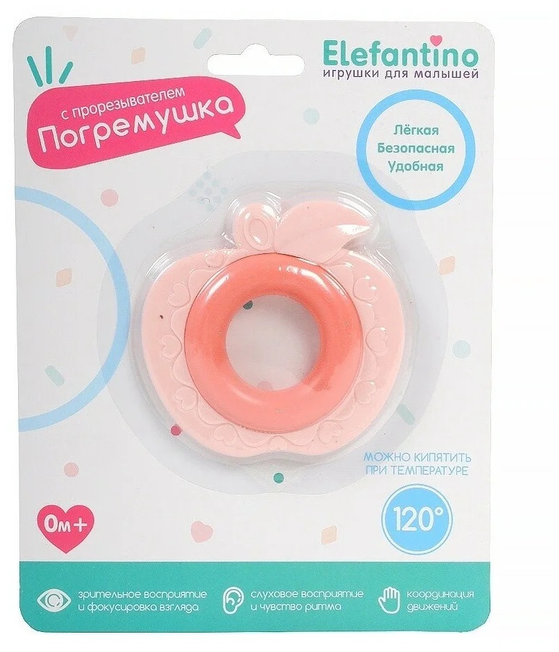 Погремушка-яблочко Тип прорезыватель-погремушка Материал пластик Кипячение да