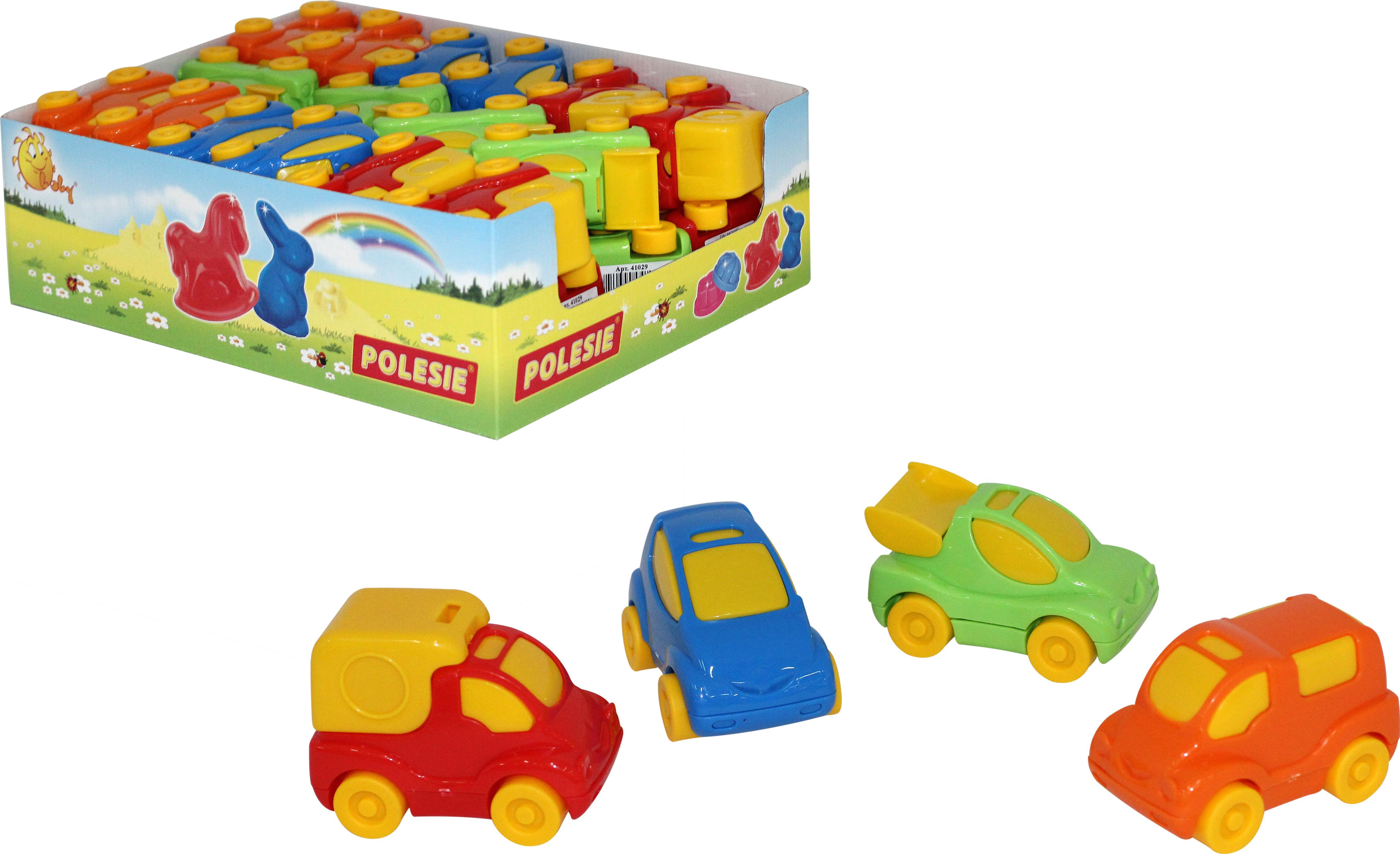 Состав дисплея: "Беби Кар" спортивный - 8 шт., "Беби Кар" пассажирский - 8 шт., "Беби Кар" фургон - 8 шт., "Беби Кар" легковой - 8 шт.