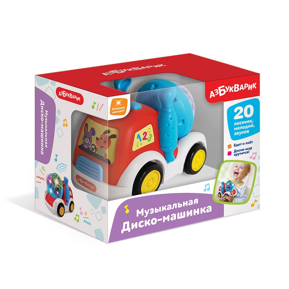 Дети смогут вращать диско-шар, нажимать светящиеся кнопки, чтобы услышать песни и фразы. Игры с музыкальной машинкой способствуют развитию сенсорики и мелкой моторики. Ведь она такая яркая и классная, что к ней все время хочется прикасаться. Машинка стимулирует визуальные, слуховые и тактильные навыки. Вашему ребёнку она точно понравится, с ней любая игра превратится в настоящее шоу!