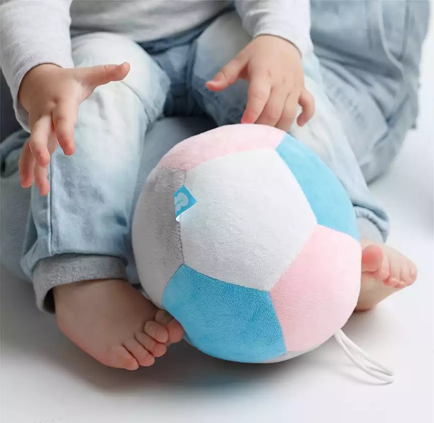 Погремушка внутри мячика и различные подвижные игры с ним способствуют развитию общей координации движений, внимания, воображения и фантазии. При играх с плюшевым мячом дети задействуют все группы мышц.