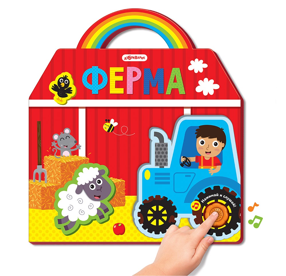 Играть под музыку еще интереснее! При нажатии на кнопочку малыш послушает веселые песенки с голосами зверят: «Счёт на ферме», «Мама курица», «Ходит котик по двору», «Овечка», «Гребешок для козочки», «Ждёт лошадка малышей».