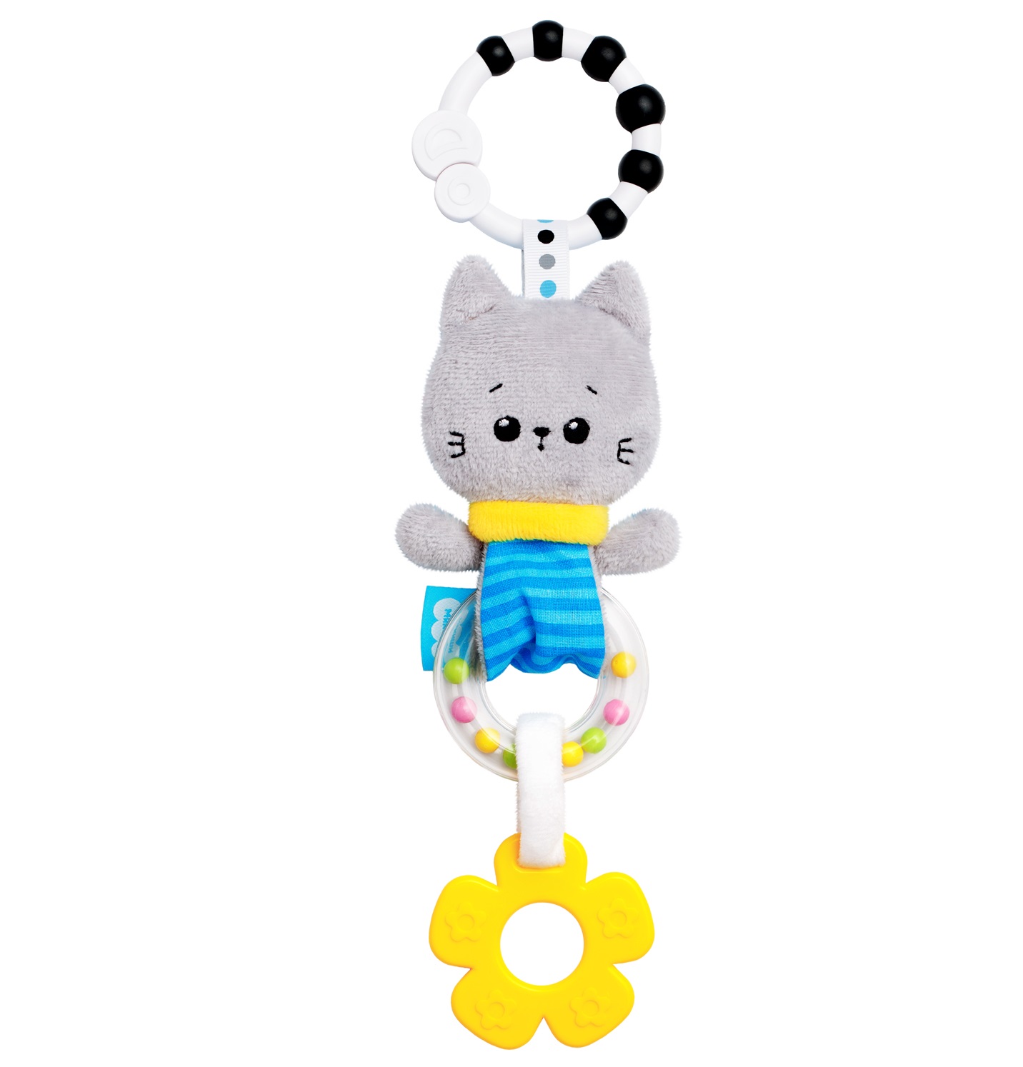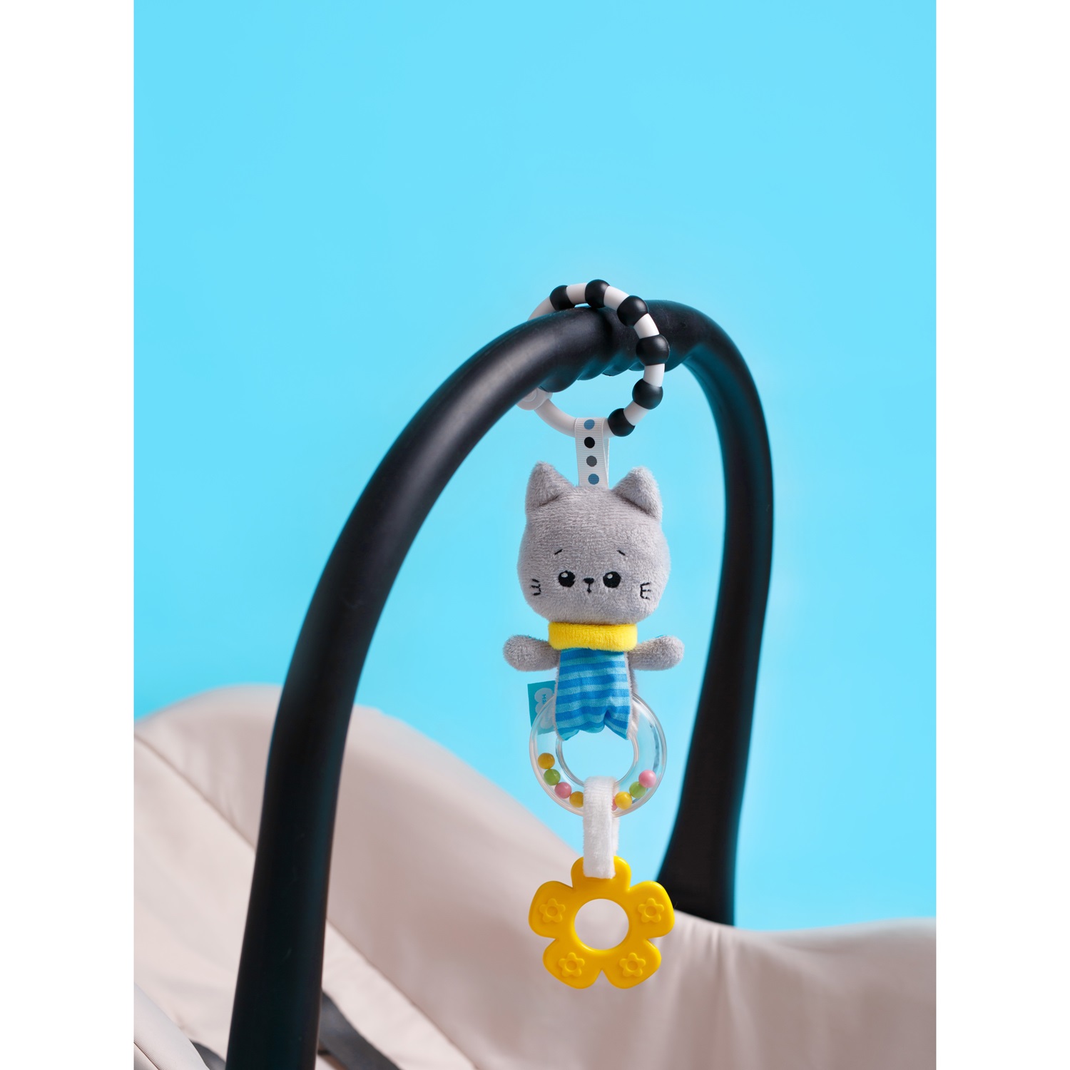 Игрушка-подвеска «Котёнок Кекс» с погремушкой для кроватки, коляски для новорожденных и автокресла станет незаменимым помощником в развитии малыша.