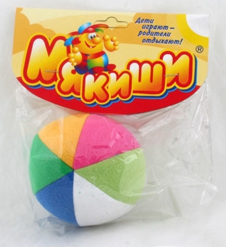 - Изделие выполнено в виде мягкого мяча, сшитого из ярких цветных лоскутов.