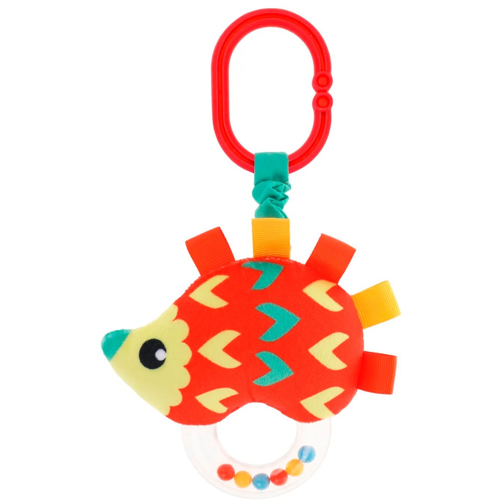 Подвеска погремушка Ёжик Жирафики 940028. Погремушка - одна из первых и самых любимых игрушек для каждого малыша. Погремушки помогают детям развивать тактильные ощущения, хватательный рефлекс, а также зрительное и слуховое восприятие. Играть с такой игрушкой не только полезно, но и очень интересно! Разноцветные шарики внутри пластмассового колечка весело подпрыгивают и забавно гремят, если хорошенько потрясти игрушкой в воздухе. Ежик сшит из очень приятных на ощупь разноцветных тканей: гладких, ворсистых и вязаных.