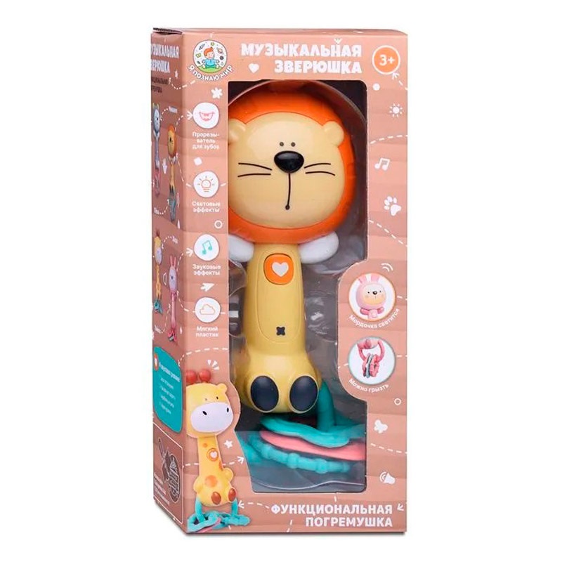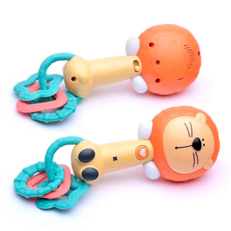 Погремушка Львёнок на батарейках Наша игрушка Y0014-3. Интересная игрушка-погремушка, которая сочетает в себе классическую погремушку и проигрывание мелодий. Игрушка имеет забавный внешний вид в виде львёнка. Электропитание осуществляется от батарейки.