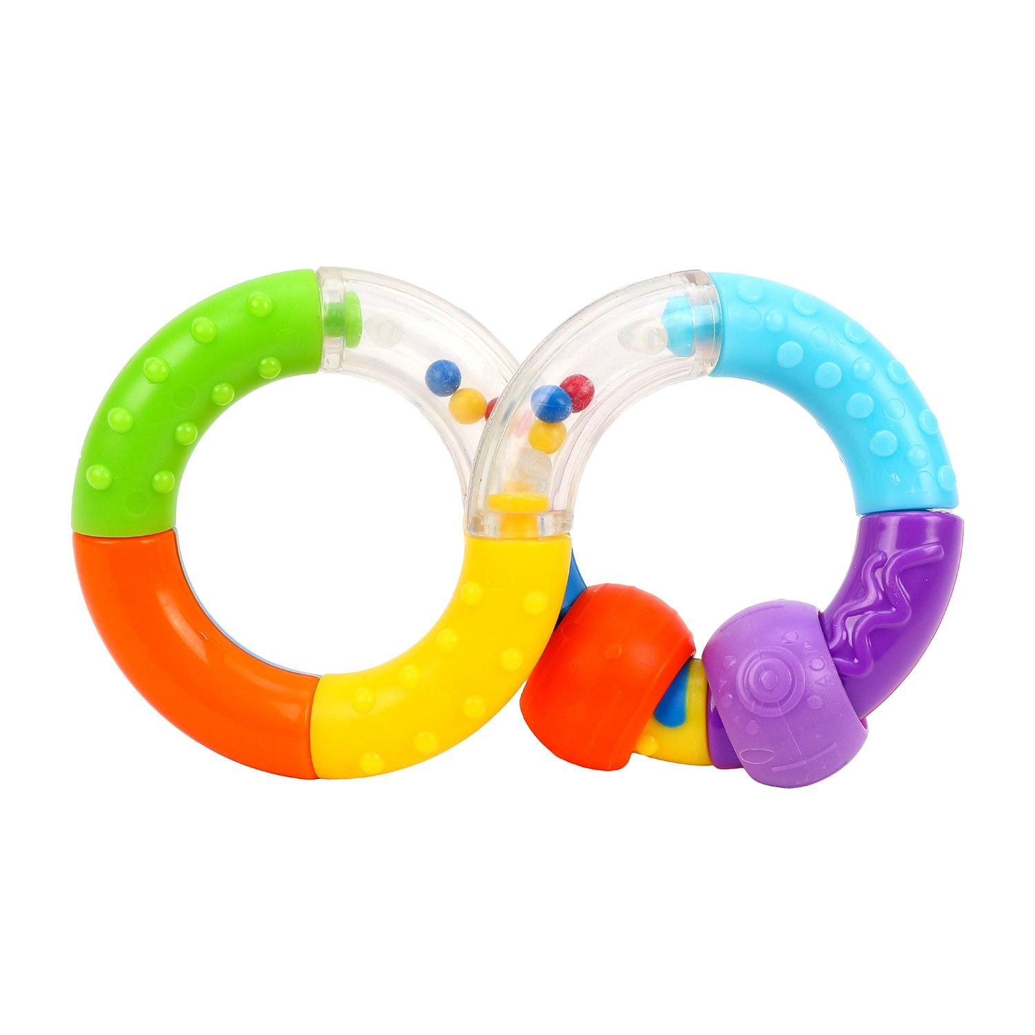 В самом раннем возрасте маленькие дети активно познают и изучают окружающий мир через сенсорное восприятие. Яркая погремушка-трансформер поспособствует развитию у малыша зрительных и слуховых навыков, тактильных ощущений и хватательного рефлекса.