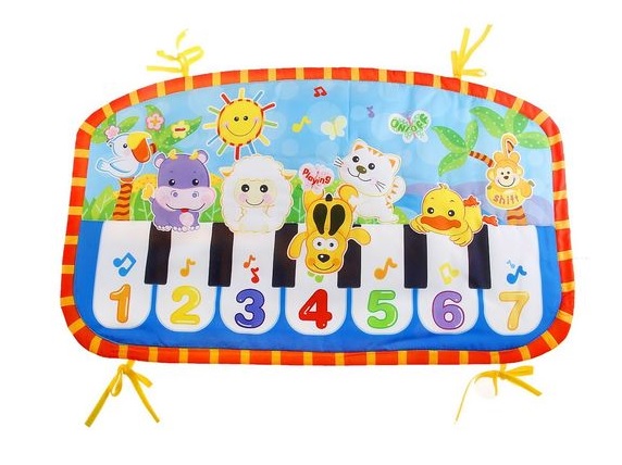 Коврик «Пианино» познакомит ребёнка с голосами животных, поможет выучить цифры и развить музыкальный слух. При нажатии на каждую из семи клавиш звучат ноты. Также игрушка воспроизводит щебетание цыплёнка, мяуканье котёнка, лай щенка. Если малыш надавит пальчиками на изображение солнышка, то услышит весёлые мелодии.