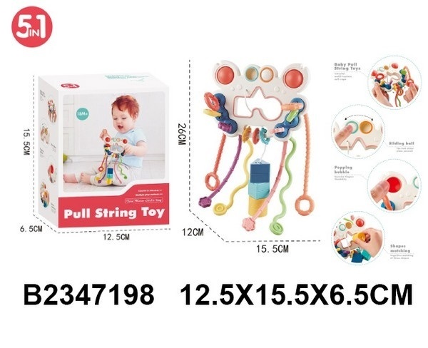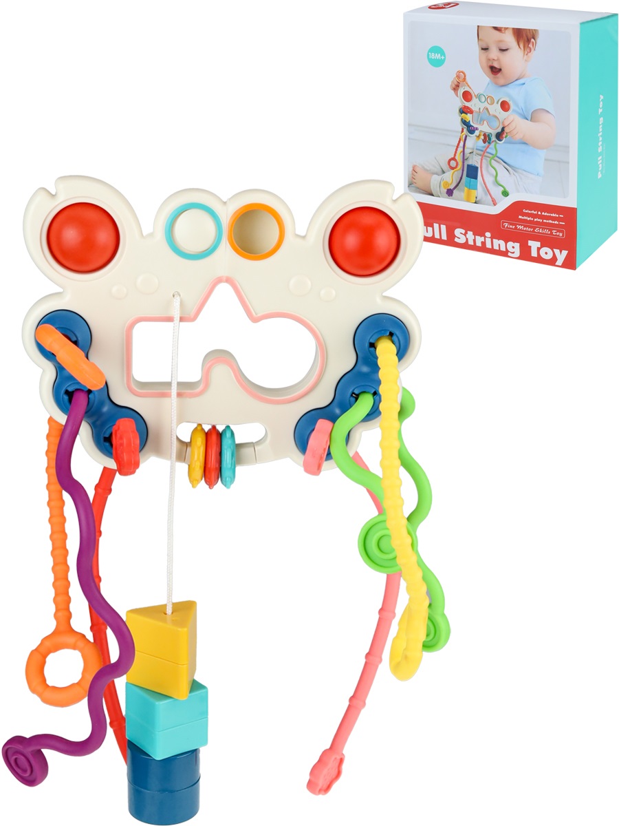 Развивающий игровой центр, разноцветные шнурки-тянучки, элементы поп ит, можно играть в воде, сортер, размер: 15,5*6,5*12,5 см, в/к 12,5*15,5*6,5 см