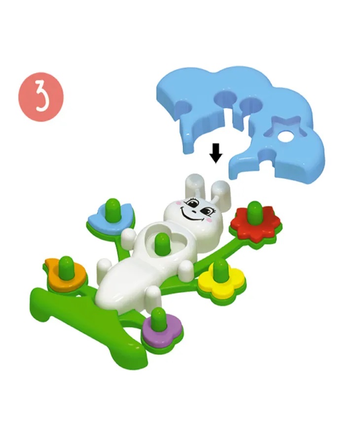 Игрушка состоит из 19 ярких деталей. Сочетает в себе сортер и пирамидку, благодаря чему надолго увлекает ребёнка и даёт возможность провести время с пользой.