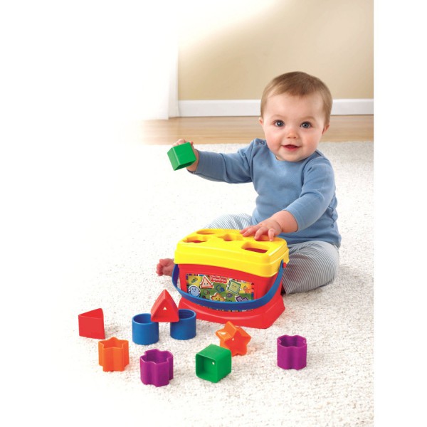 Проталкивая цветные формочки в ведерко через специально предназначенные отверстия, ребенок сможет запомнить основные геометрические формы (цилиндры, прямоугольники, треугольники, звездочки), тренировать координацию движений, развивать глазомер.