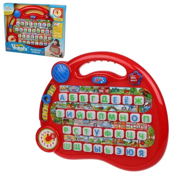 Азбука на бат. обучающая Азбука на батарейках обучающая, песни/говорящие часики/яркие картинки, 6 режимов игры, 33 сияющие буквы, в коробке 40,5*5,5*34 см