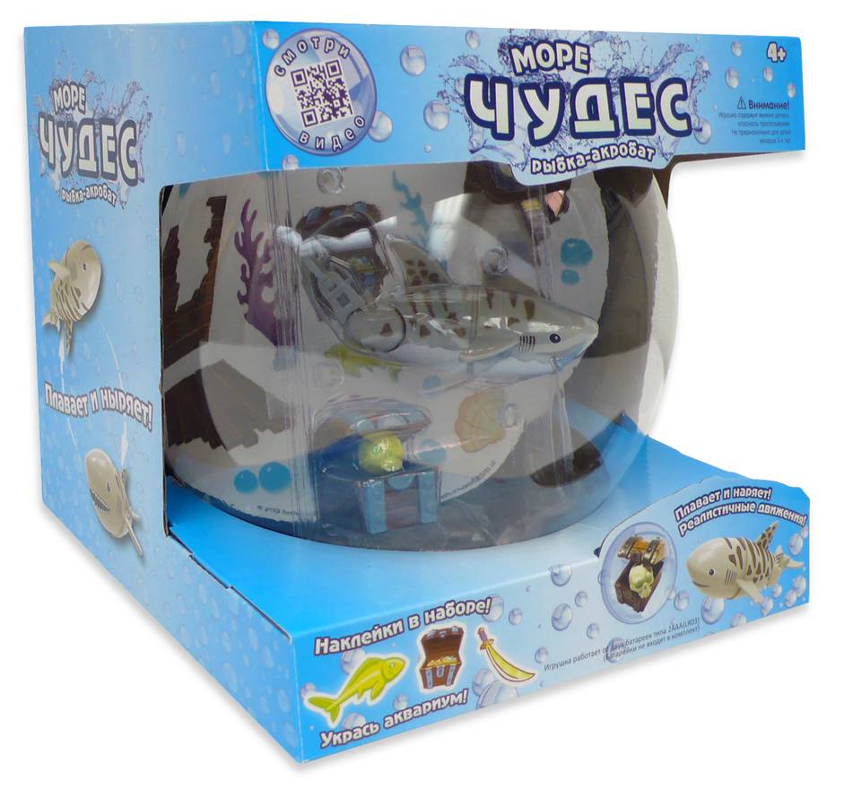 Ваш малыш может стать обладателем маленькой ручной акулы! Акула-акробат Хэмми из серии «Море чудес» обязательно порадует вашего ребенка своими невероятными способностями. Она не только плавает в воде, но выполняет акробатические трюки, к примеру, она даже может выныривать из воды! Эта шустрая акула приведет в восторг даже взрослого, ведь она такая шустрая и ведет себя как настоящая рыбка.