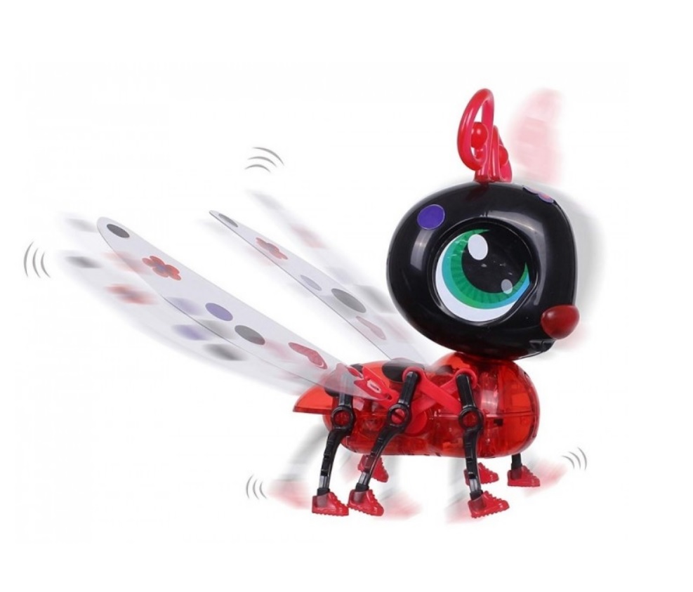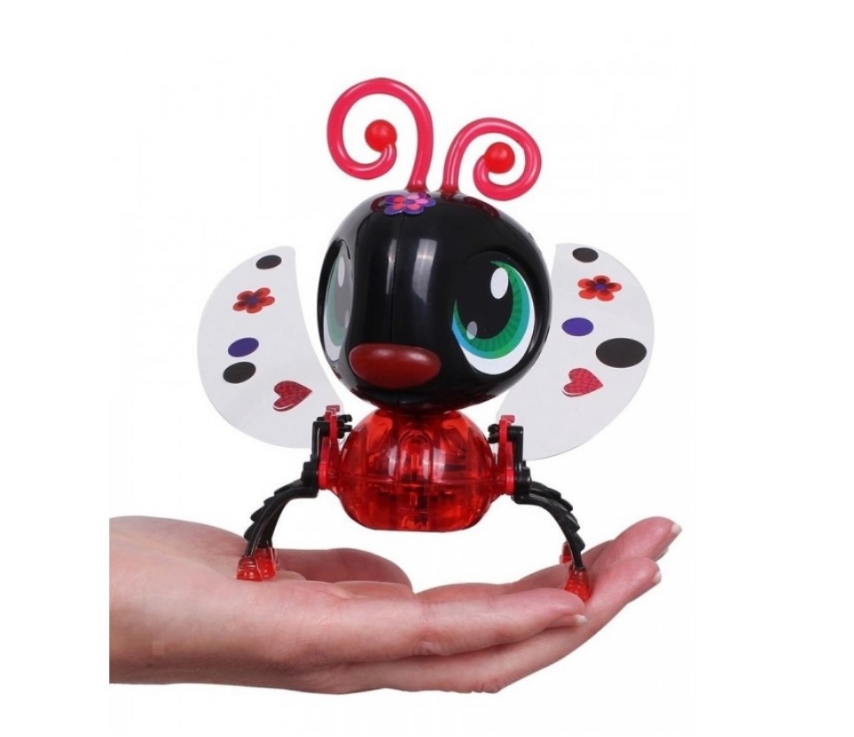 - Божья коровка умеет забавно двигать лапками и крылышками, а еще она очень реалистично ползает благодаря встроенному моторчику.