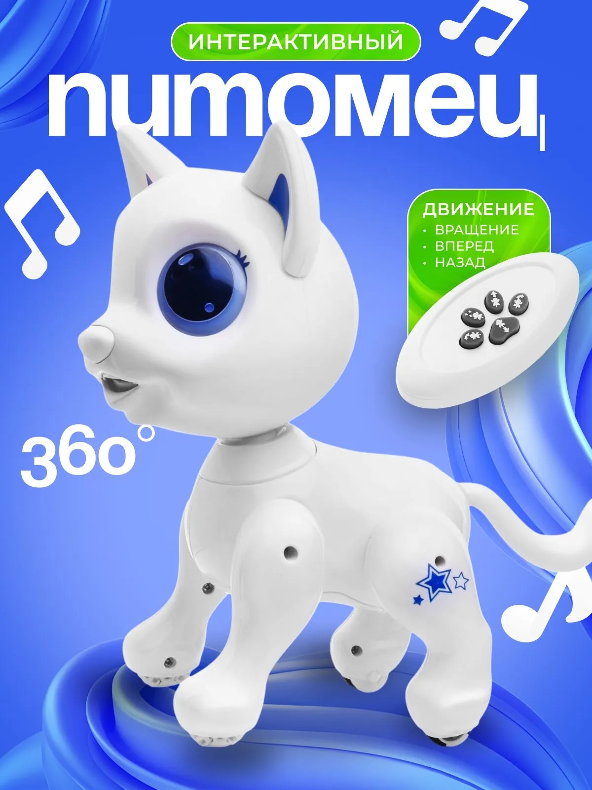 • Игрушка работает от 3-х батареек ААА (не входят в комплект)• Пульт управления работает от 2-х батареек ААА (не входят в комплект)• Функции:- включение и выключение 3-х секундным нажатием на нос.- перемещение при помощи колёс на задних лапах.- движение вперёд, назад.- повороты влево, вправо.- шагание вперёд.- вращение на 360 градусов.- светятся глаза.- голова поворачивается вручную.• Размеры игрушки: 20х13х22 см.• Материал: пластик.• Соответствует требованиям безопасности продукции.• Для детей от 3-х лет.