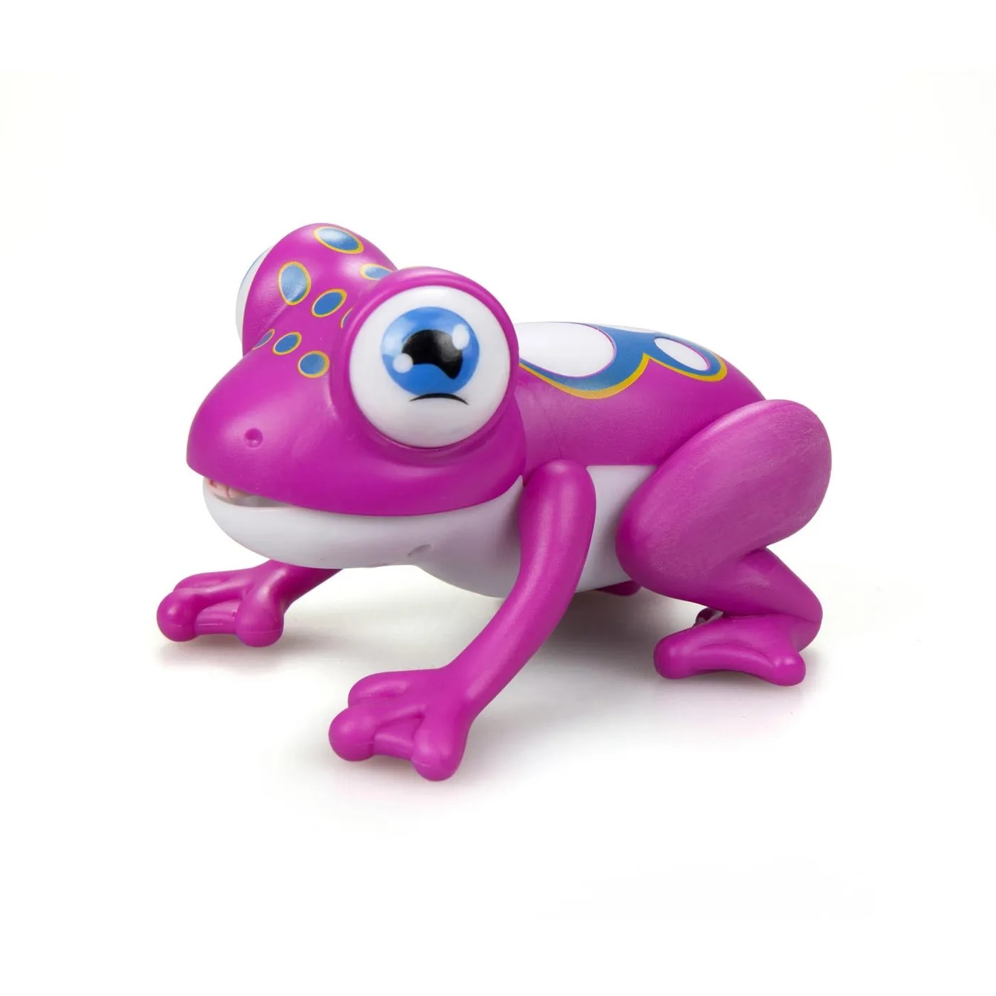 Забавная лягушка ярко-розового цвета по имени Глупи – робот, который выполняет различные интересные действия. Как настоящая квакуша, она умеет «ловить добычу». Для этого надо просто нажать на голову лягушки. В ответ лягушка стремительно выбрасывает наружу длинный язык со встроенным магнитом, который и захватывает «улов». В качестве приманки можно использовать различные мелкие металлические предметы. Действия игрушки-робота сопровождаются светозвуковыми эффектами – на спине лягушки подсвечиваются три белых пятна и воспроизводятся оригинальные звуки. Лягушка сделана из ударопрочного пластика, хорошо переносит нагрузки. Игрушка имеет компактные размеры – 16 х 8 х 18 см, что дает возможность брать ее с собой куда угодно. Для активной работы роботизированной квакши требуются батарейки – 3 х LR44 (идут в комплекте). Лягушка Глупи – робот, который сделает досуг вашего ребенка необыкновенно увлекательным. Компания Silverlit с особой тщательностью относится к безопасности своих изделий для здоровья детей. Игрушки выполнены из экологически чистых материалов с применением стойких, нетоксичных красок. Вся продукция гипоаллергенна. Отличный подарок для ребенка на День Рождения, именины, 23 февраля, 8 март или Новый Год.