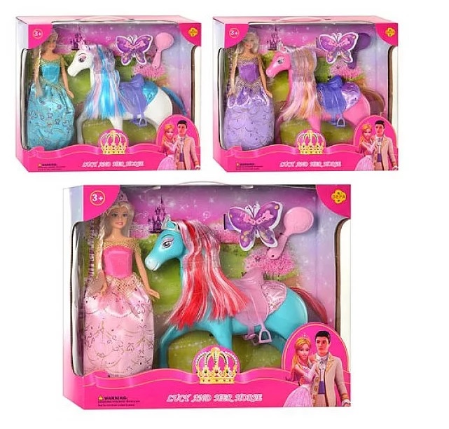 Наверное, каждая девочка любит играть в куклы. Ведь это так интересно: придумывать сюжет, менять кукле наряды, создавать красивые причёски! В коллекции малышки обязательно должна быть принцесса, у которой есть верный друг - красивая лошадка. Принцесса прекрасна: у неё восхитительное платье, её волосы украшены короной. Она с нежностью ухаживает за питомцем: расчесывает гриву и заплетает косички с помощью аксессуаров, которые идут в комплекте.