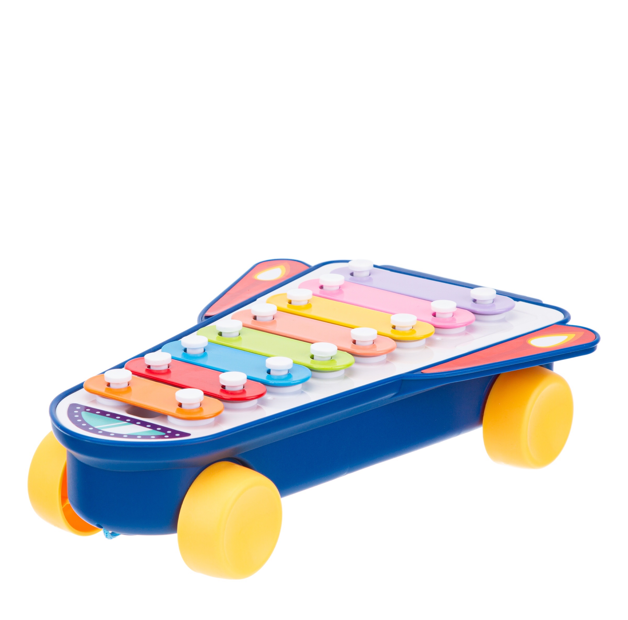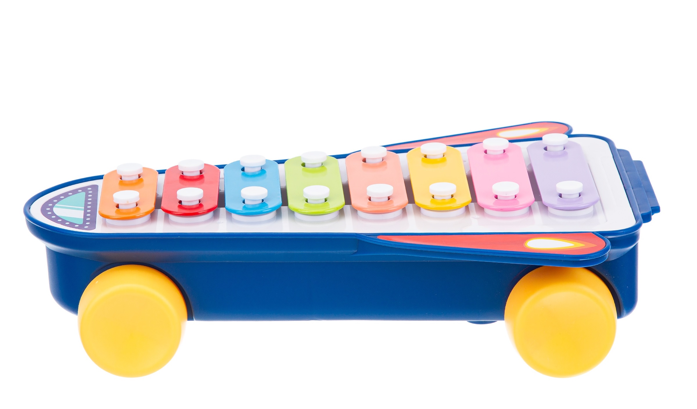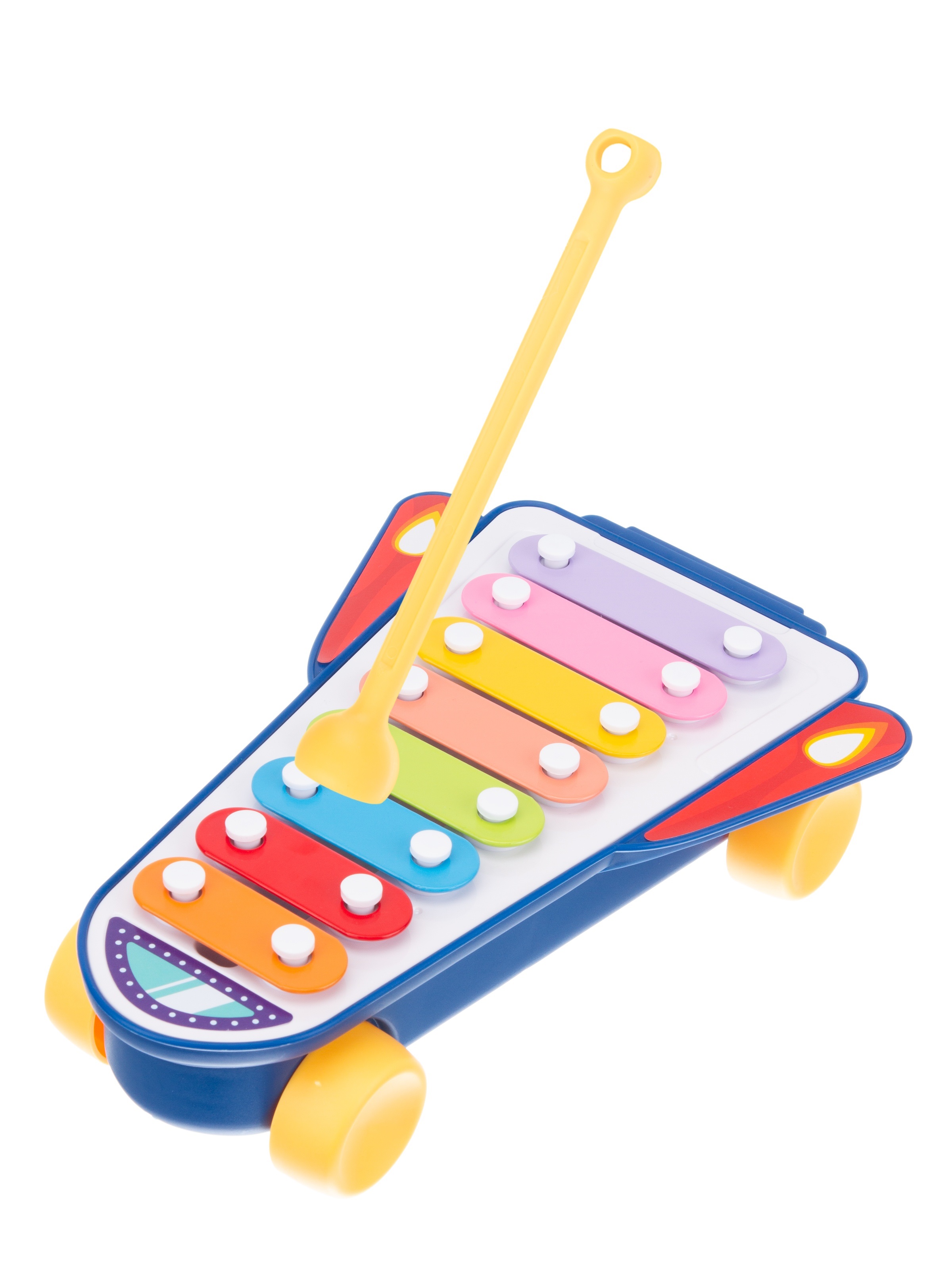 Форма ксилофона действительно напоминает ракету. Его можно использовать не только как музыкальный инструмент, но и как обычную каталку, что вызовет у ребенка восторг.