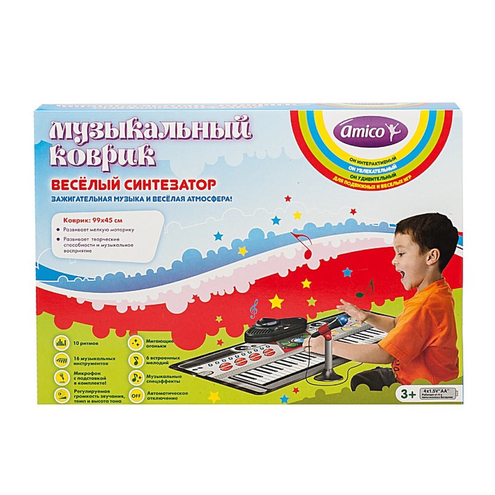 Музыкальный коврик "Веселый синтезатор" — это компактная версия современного пианино, которое включает в себя огромное количество интересных и полезных функций, таких как: световое сопровождение музыкальных композиций, воспроизведение звуков и так далее. Синтезатор оборудован клавишами сенсорного типа и способен работать в нескольких режимах: обучающий, демонстрационный и игровой. Помимо этого в комплект поставки также входит микрофон и подставка для него. При использовании Веселого синтезатора ребенок будет иметь дело с 10 музыкальными ритмами и 16 инструментами, а также с 6 встроенными мелодиями. На синтезаторе имеются специальные кнопки для регулировки громкости, также любые звуки сопровождаются световыми эффектами. Музыкальный коврик "Веселый синтезатор" — это компактная и легкая игрушка, которая может быть использована практически на любом месте.