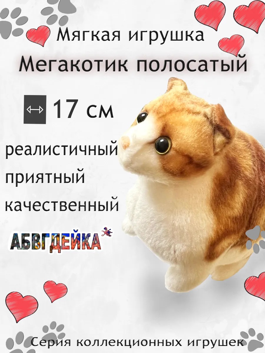 Игрушка Мегакотик полосатый 17см от АБВГДЕЙКА станет прекрасным подарком для детей и взрослых. Этот пушистый котёнок, сшит из мягкого искусственного меха и хлопка, порадует своей реалистичной внешностью и приятной на ощупь текстурой. Наполнитель из полиэфирного волокна делает игрушку котика легкой и комфортной для объятий. Упакован в удобный сейф-пакет, Мегакотик станет отличным сюрпризом для любимых, коллег или просто для себя.