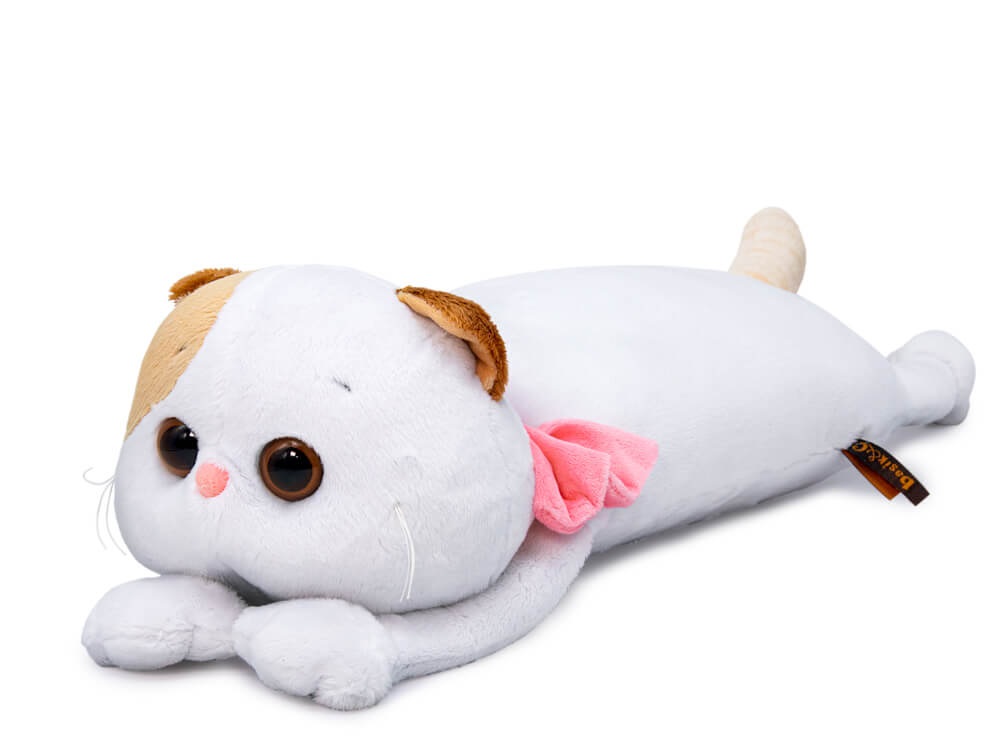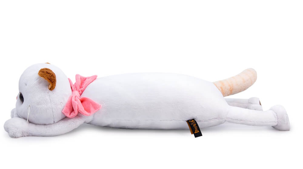 Мягкая белоснежная подушка Ли-Ли из оригинального меха, с объемным бантом из софта цвета розовой карамели. Элегантное дополнение для отдыха и путешествия!