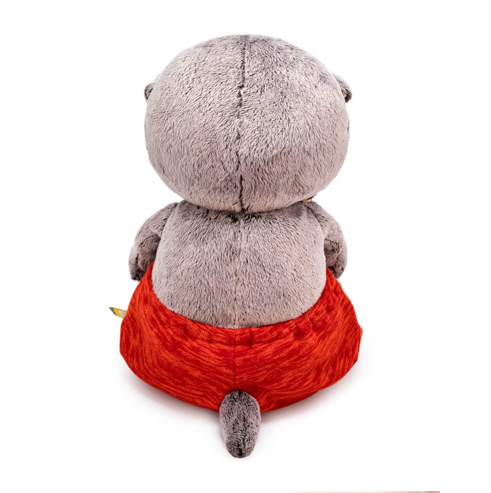 Малыш Басик в теплых штанишках на резиночках, сшитых из мягкого меланжевого флиса цвета красного апельсина. Также на Басике нежно?зеленый галстук?бабочка. А в лапках у котёнка новогодняя игрушка, выполненная вручную, которую при желании можно повесить на домашнюю ёлочку.