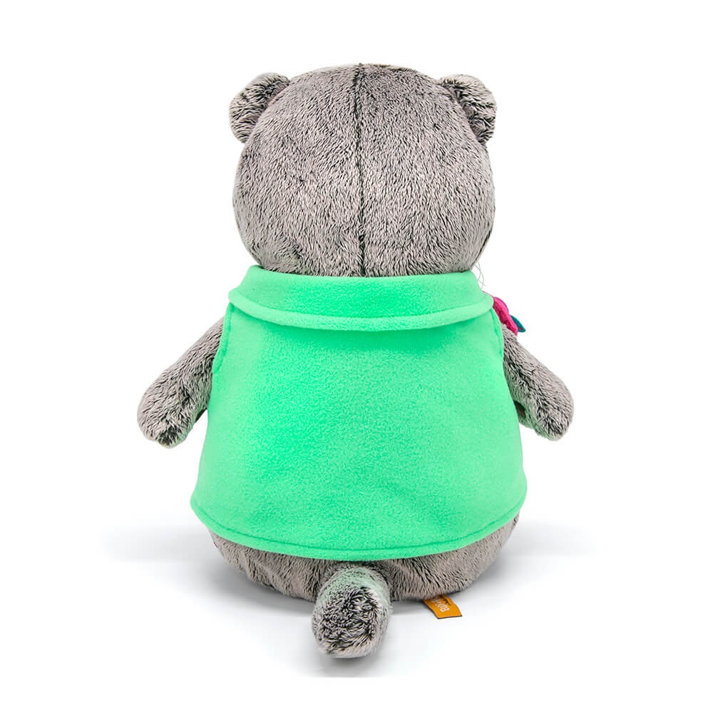 Кот в мягком жилете из флиса цвета весеннего бутона, в лапках держит оригинальное розовое сердечко из флиса ручной работы. Сердечко украшено крупными цветами из фетра различных оттенков.