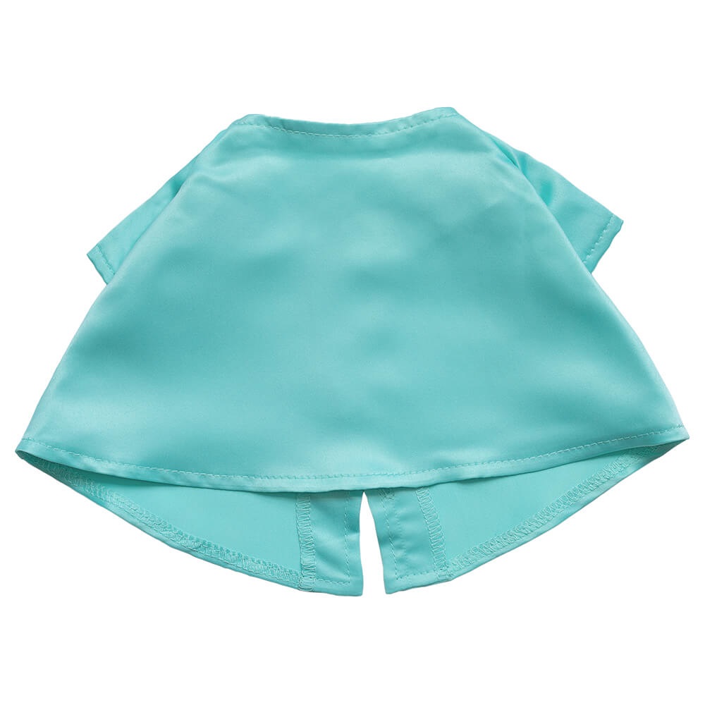 Плащ из крепа цвета бирюзовой воды для кошечки Ли-Ли. Плащ сшит расклешенным к низу и воротником?пелериной с завязкой на бант. Застегивается плащик на маленькие розовые пуговки. Также в комплекте милая сиреневая шляпка с розовым бантиком.