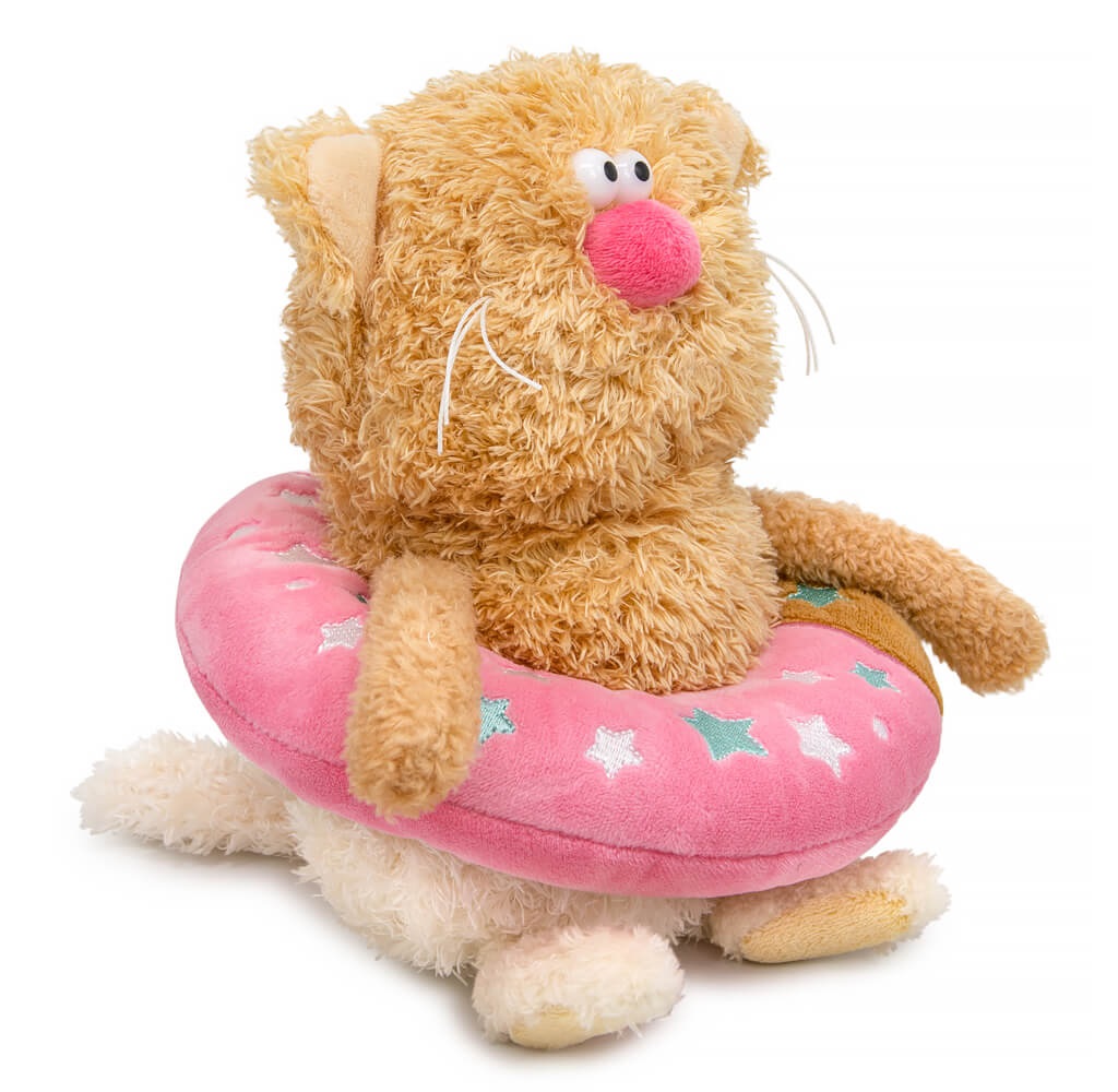 Очаровательный котик Раф из тактильно приятного эко меха в двух оттенках, цвета песочного печенья и цвета топленого молока. Котик уютно расположился в милом пончике, который сшит из карамельного и нежно-розового софта. Пончик украшен вышивкой и имеет петельку для того, чтобы его можно было использовать в качестве подвеса.