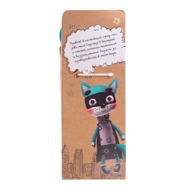- Она представляет собой мягкую игрушку, выполненную в виде лиса-супергероя.