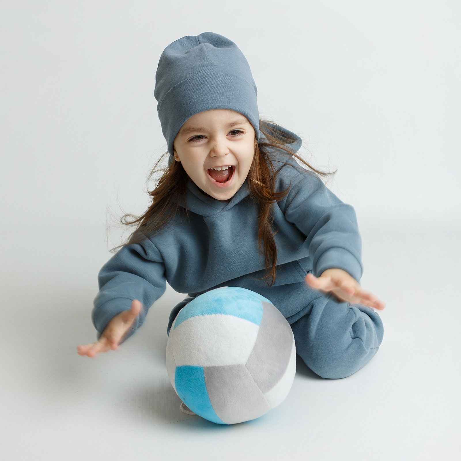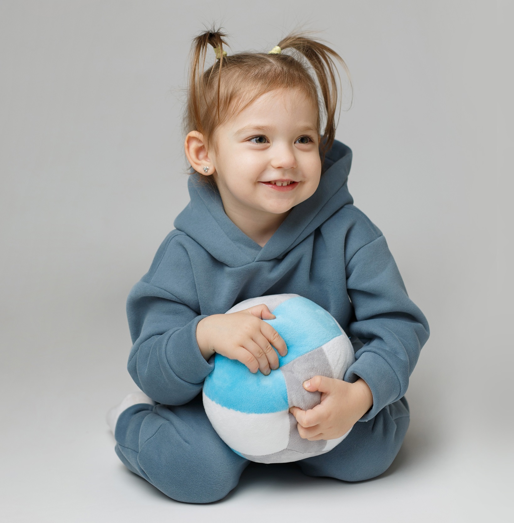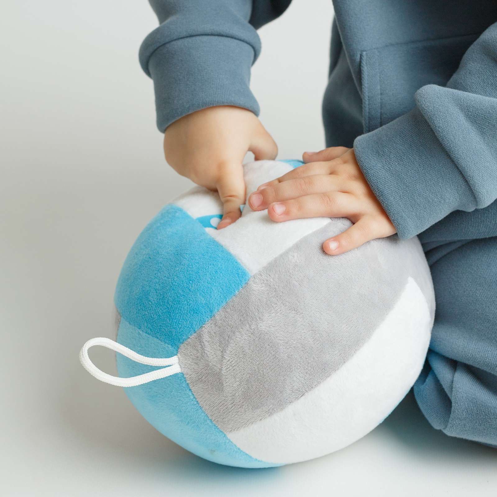 Погремушка внутри мячика и различные подвижные игры с ним способствуют развитию общей координации движений, внимания, воображения и фантазии. При играх с плюшевым мячом дети задействуют все группы мышц.